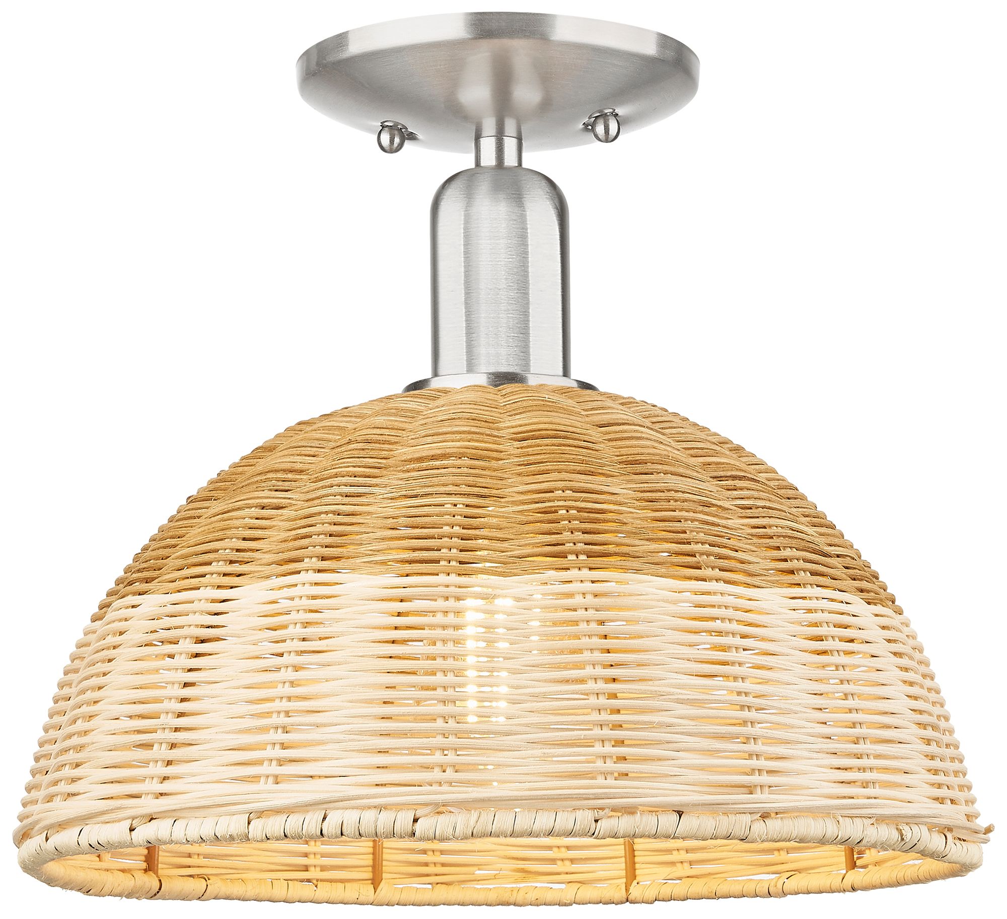 Downtown Ballston Dome 12"W Satin Nickel Semi-Flush w/ Basketweave Shade