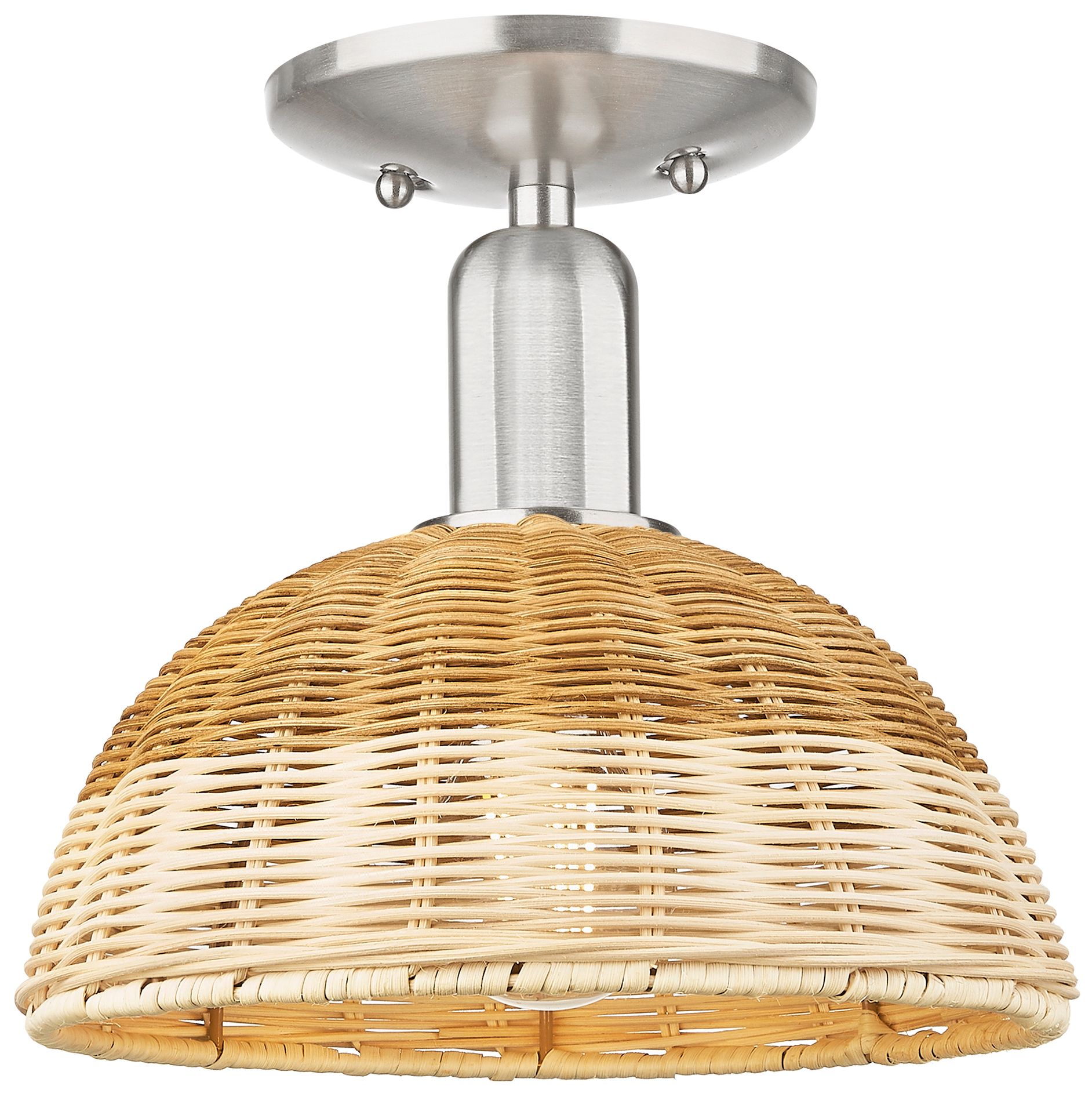 Downtown Ballston Dome 9"W Satin Nickel Semi-Flush w/ Basketweave Shade