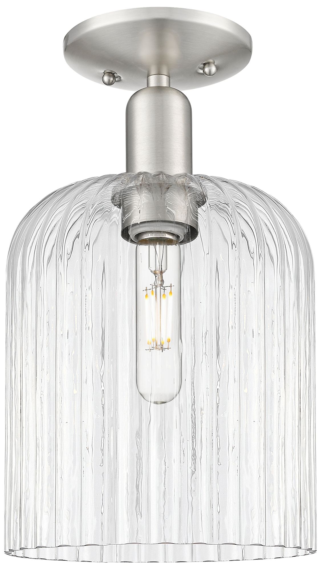 Downtown Bridal Veil 8"W Satin Nickel Semi-Flush w/ Clear Swirl Shade