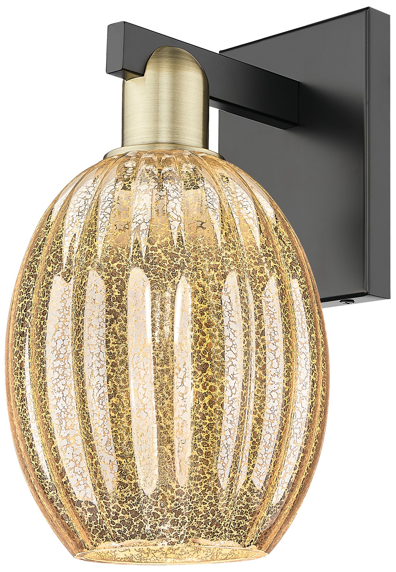 Preston 13.5"H Black Antique Brass Wall Sconce With Mercury Flute Shade