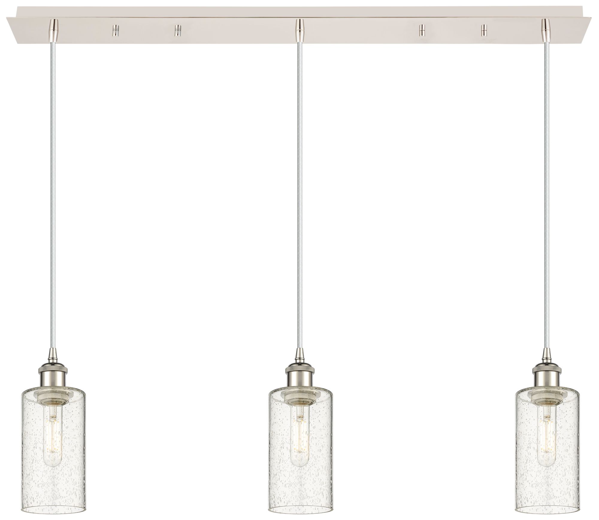 Crown Point 3 Light 37" Cord Hung Linear Pendant Nickel w/ Seedy Shade