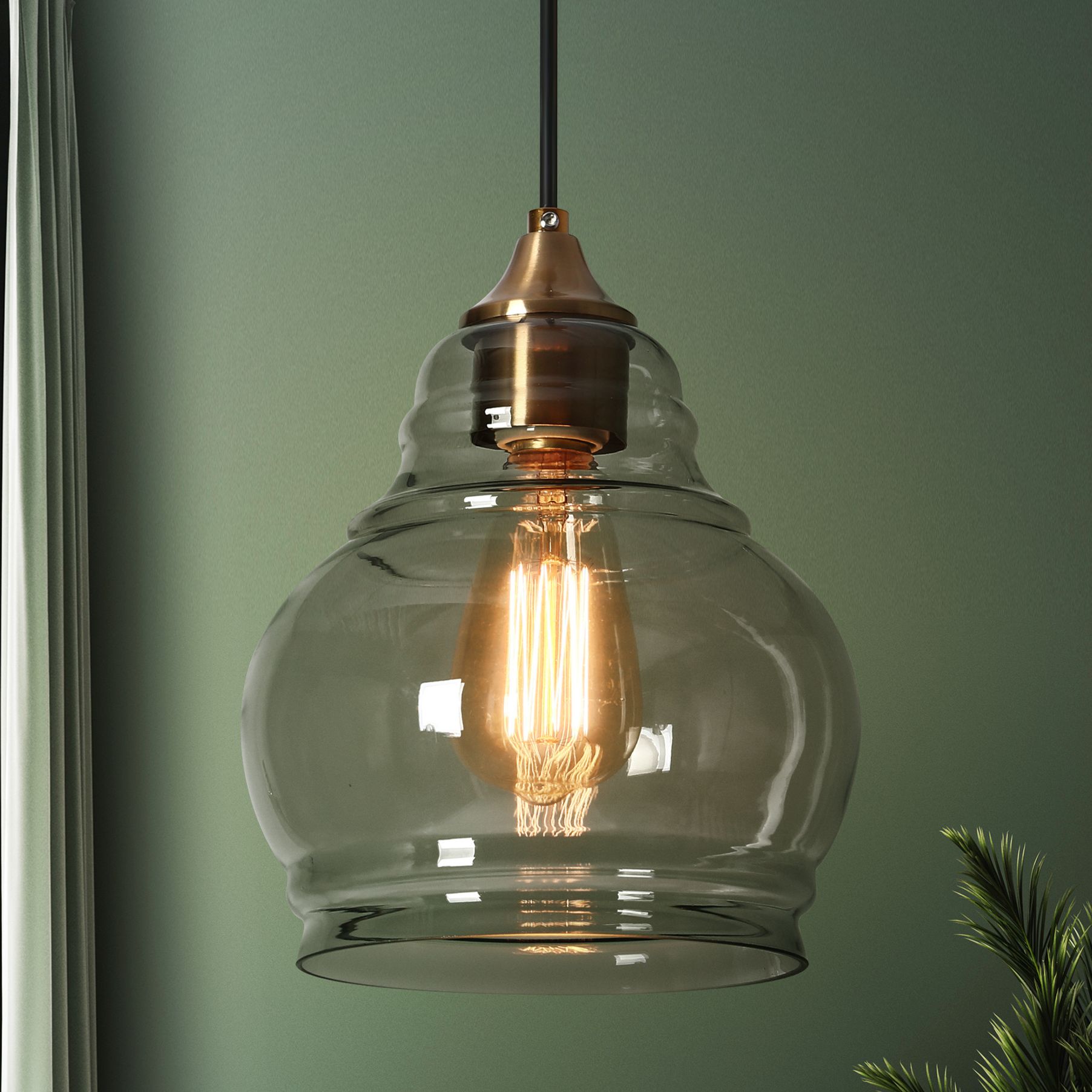 1-Light 7.9"W Jar Plated Brass Pendant Lights