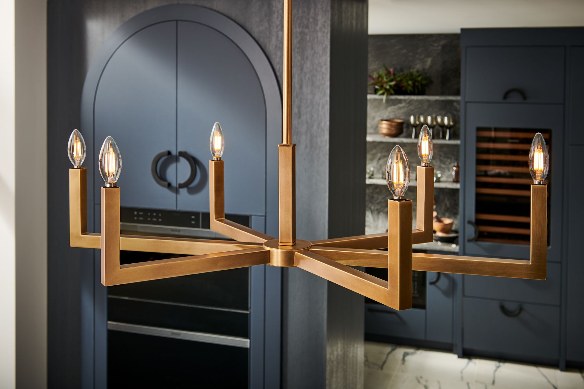 Luffa 35"W Plating Brass And Matte Black 6-Light Chandelier
