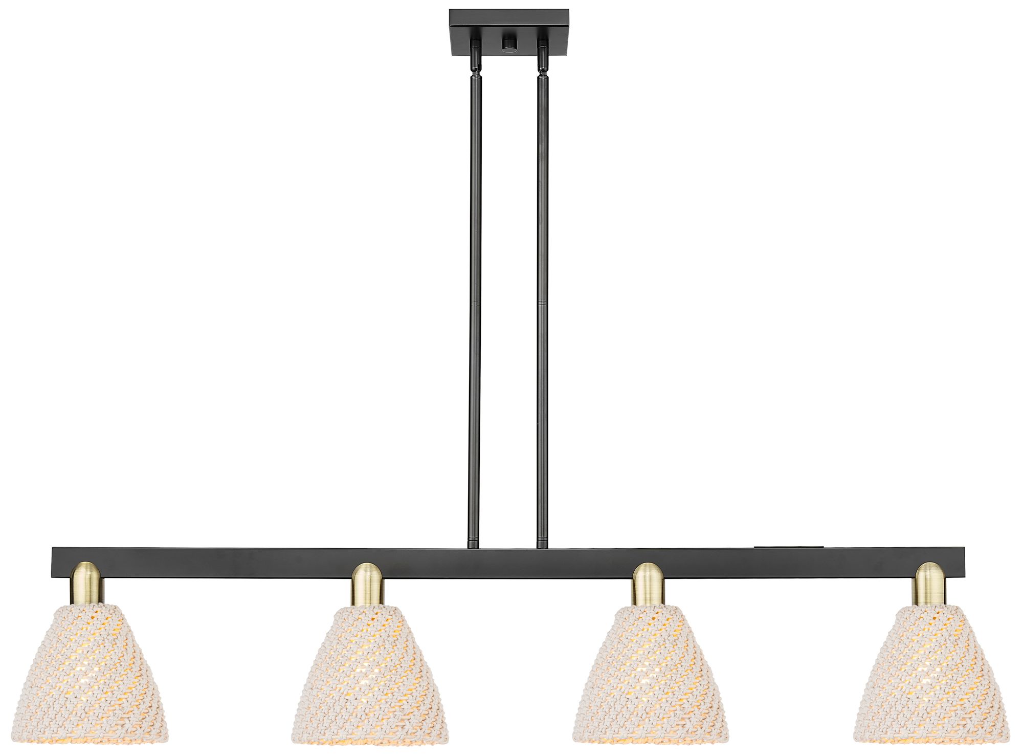 Rochester 48"W 4-Light Brushed Brass Stem Island Light w/ 8" Clea
