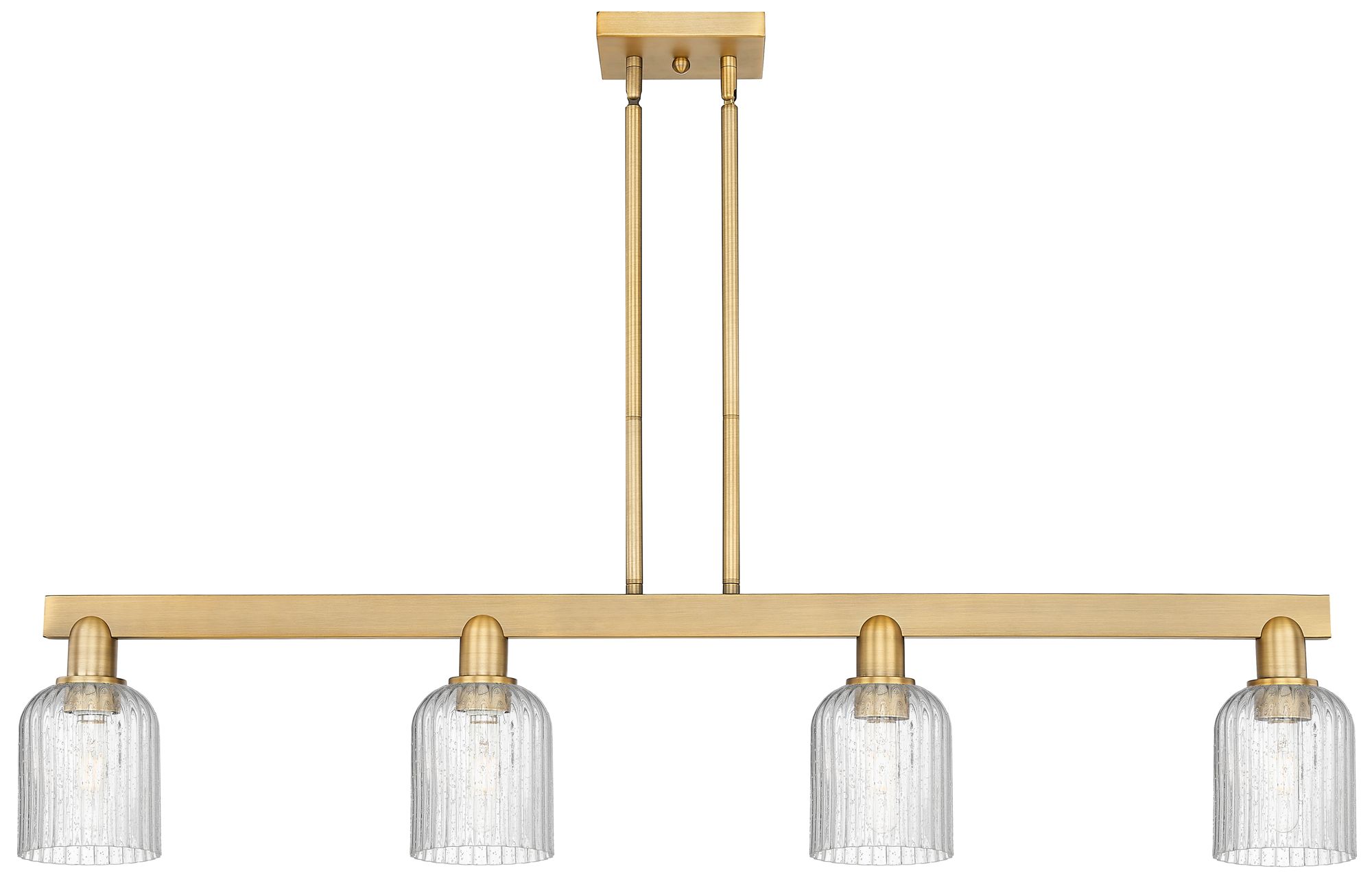 Bridal Veil 48"W 4 Light Brushed Brass Stem Island Light w/ Seedy Shade
