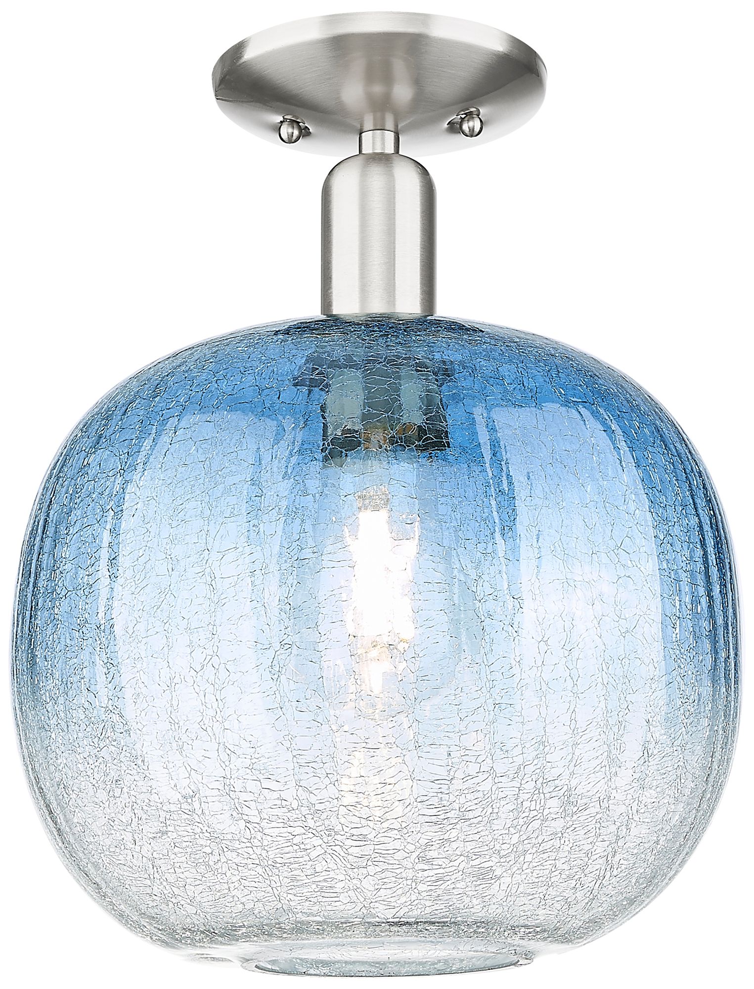 Downtown Brookhaven Sphere 10"W Satin Nickel Semi-Flush w/ Sapphire Shade