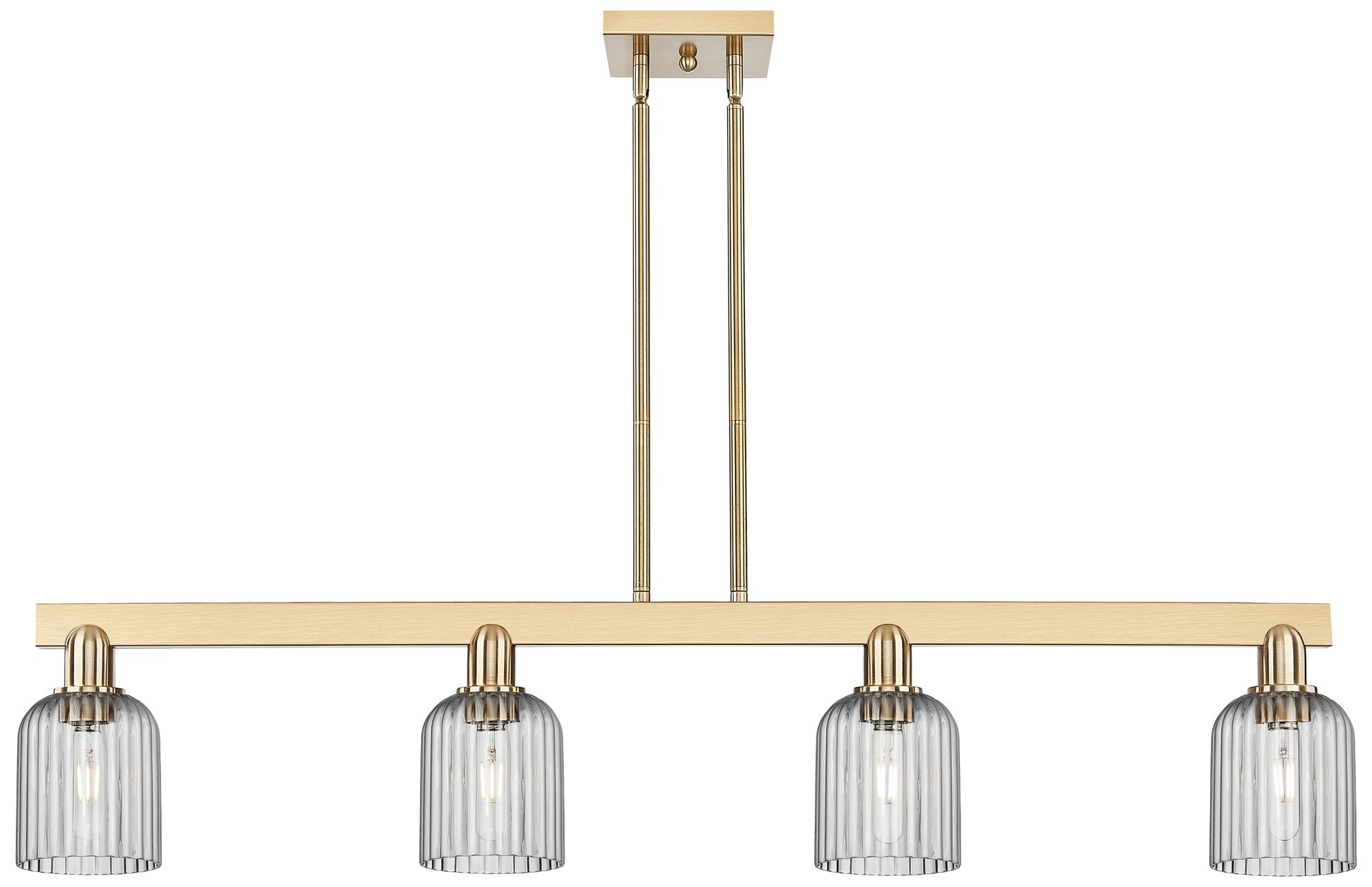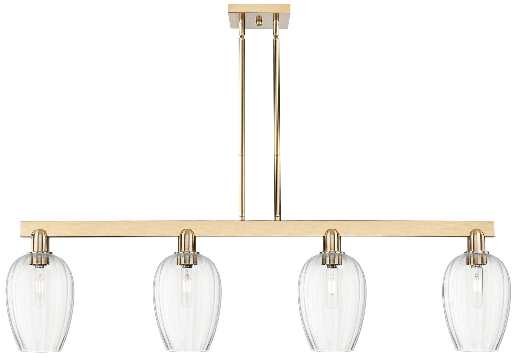 Preston 48"W 4 Light Champagne Stem Island Light With Flute Clear Shade