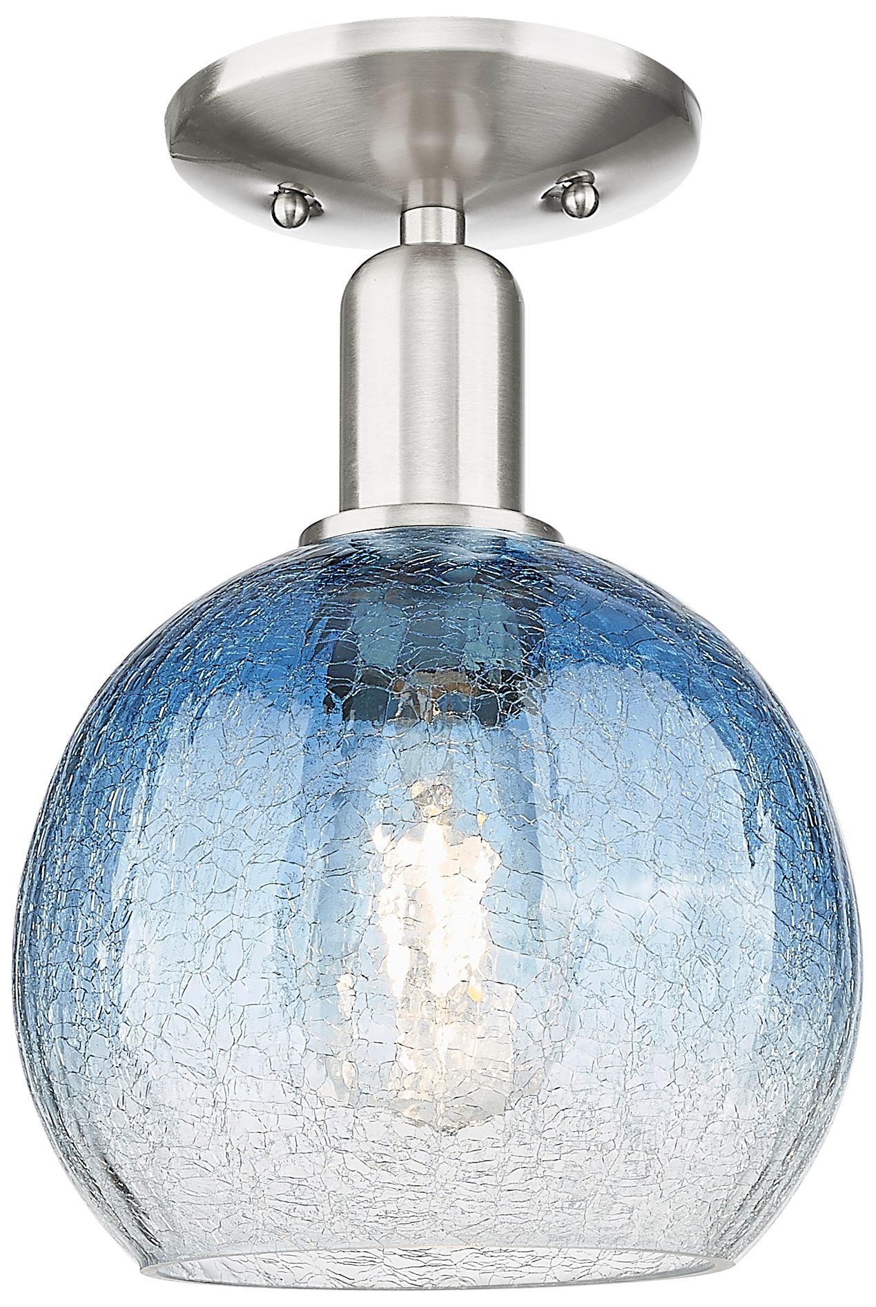 Downtown Brookhaven Globe 8"W Satin Nickel Semi-Flush w/ Sapphire Shade