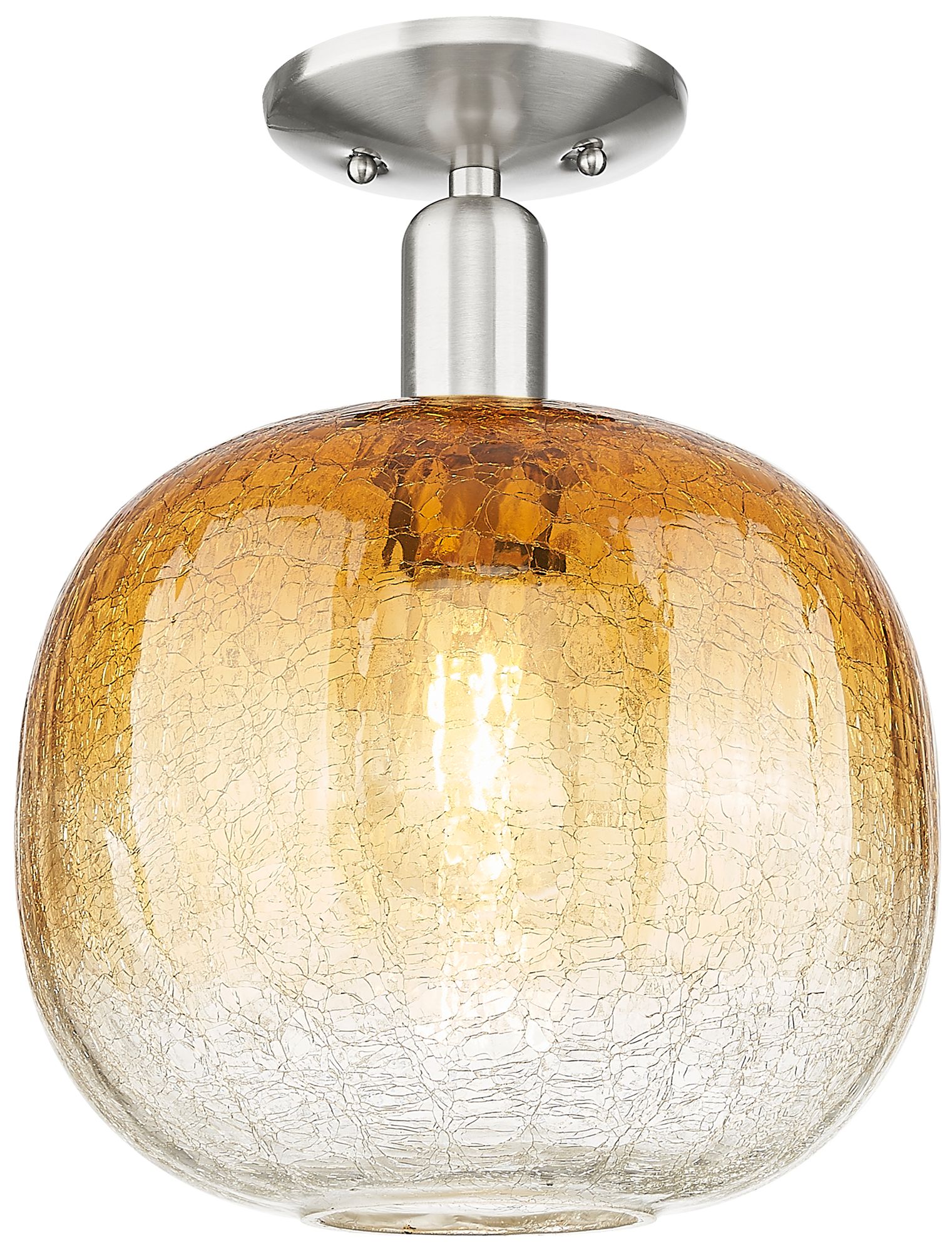 Downtown Brookhaven Sphere 10"W Satin Nickel Semi-Flush w/ Amber Shade