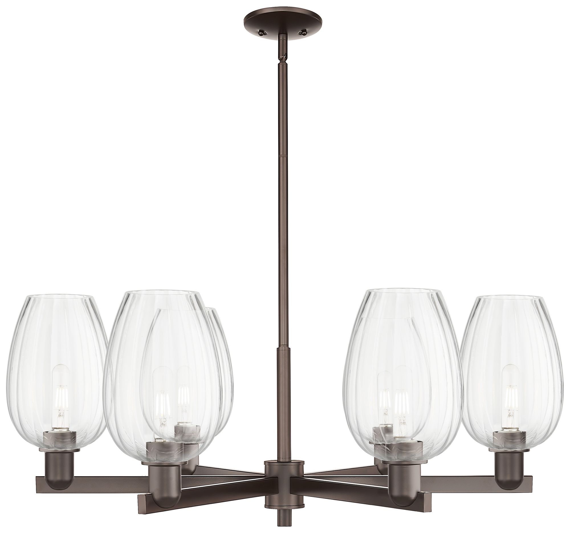 Preston 24"W 6-Lt Oil Rubbed Bronze Stem Chandelier w/ Flute Clear Shade