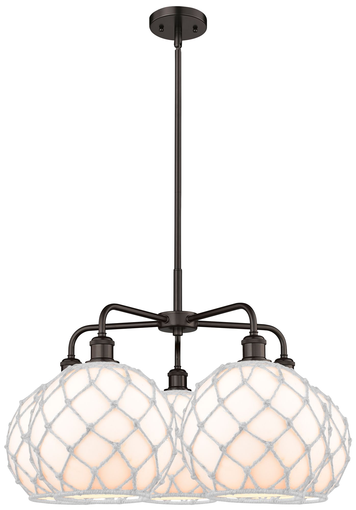 Ballston Farmhouse 29"W 5 Light Oiled Bronze Stem Chandelier w/ White Shade