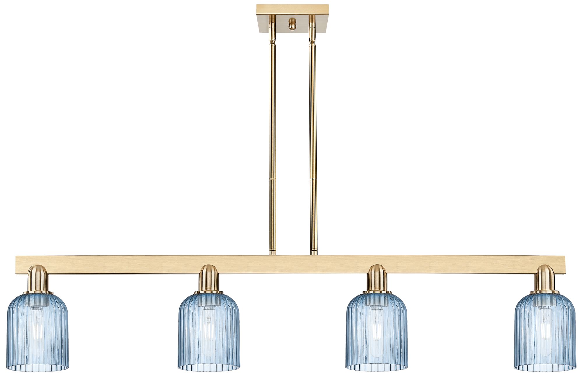 Bridal Veil 48"W 4 Light Champagne Stem Island Light With Blue Shade