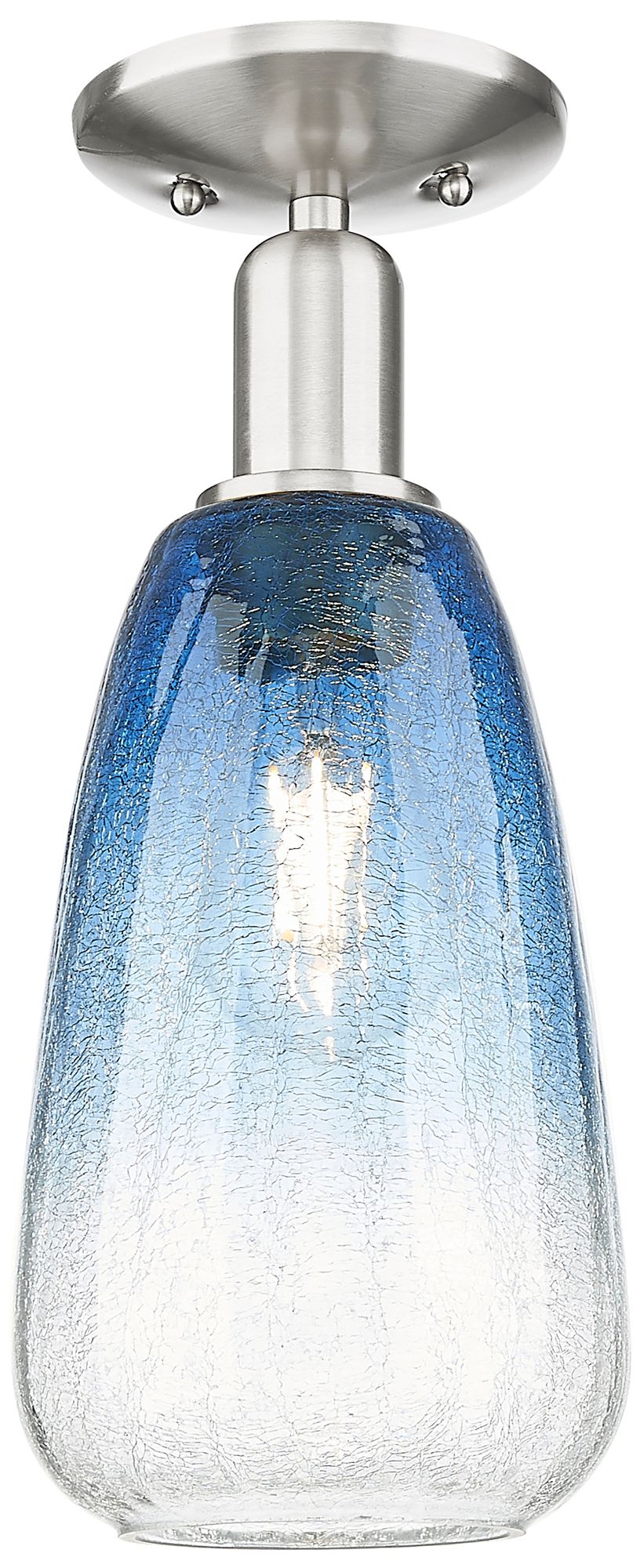 Downtown Brookhaven Almond 6"W Satin Nickel Semi-Flush w/ Sapphire Shade