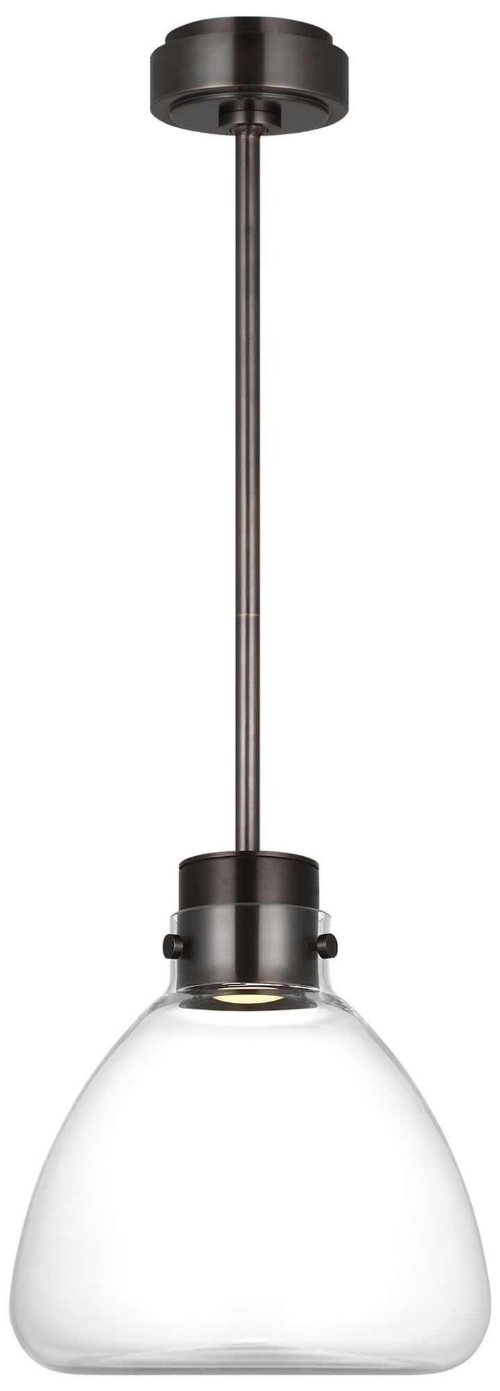 Visual Comfort Modern LED Warm Dim 12 inch Bronze and Clear Glass Pendant