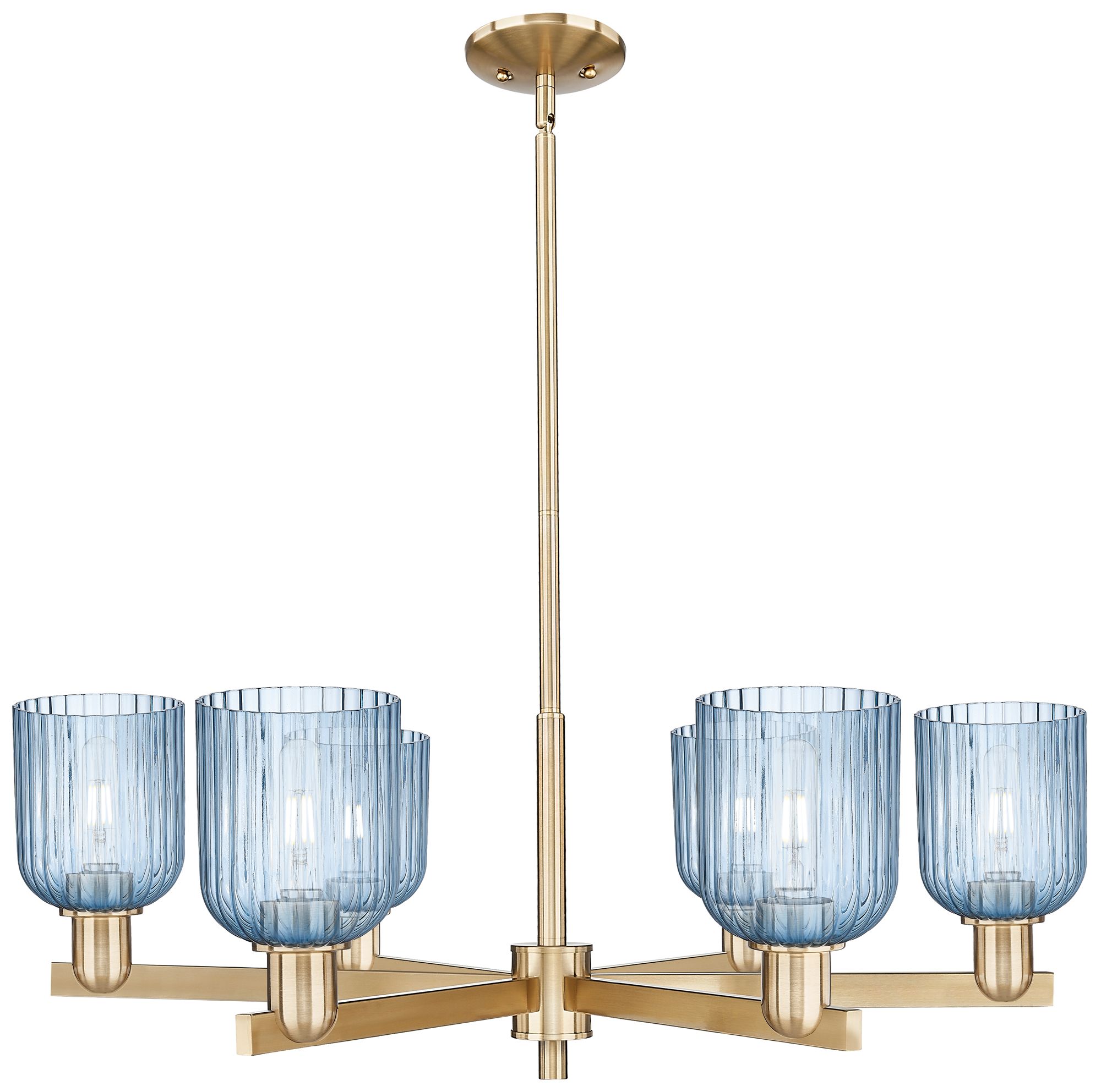Bridal Veil 35"W 6 Light Champagne Stem Chandelier With Blue Shade