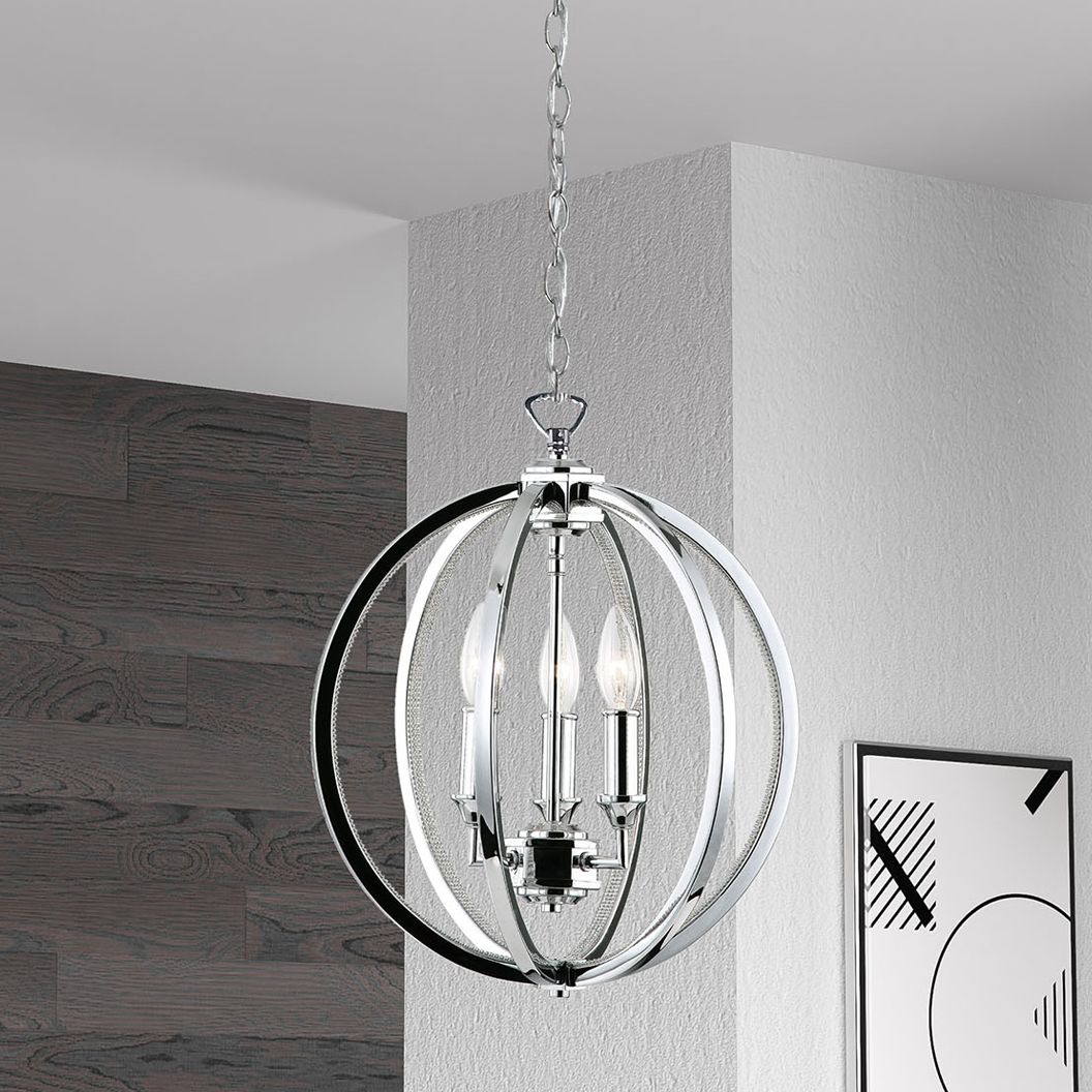 Karland 14" Wide 3 Light Crystal Studded Banding Chrome Chandelier