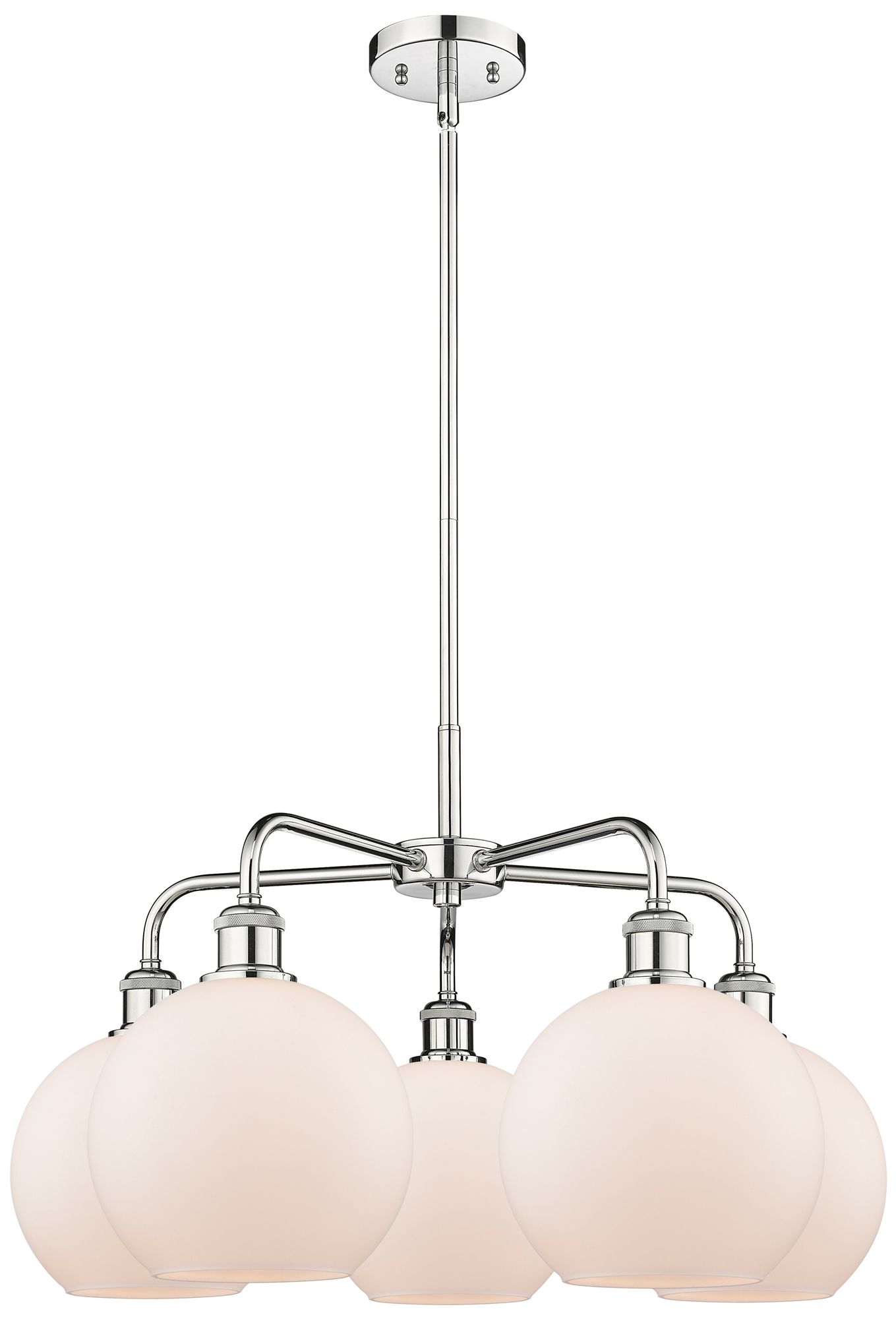 Athens 26"W 5 Light Polished Chrome Stem Hung Chandelier With White Sh