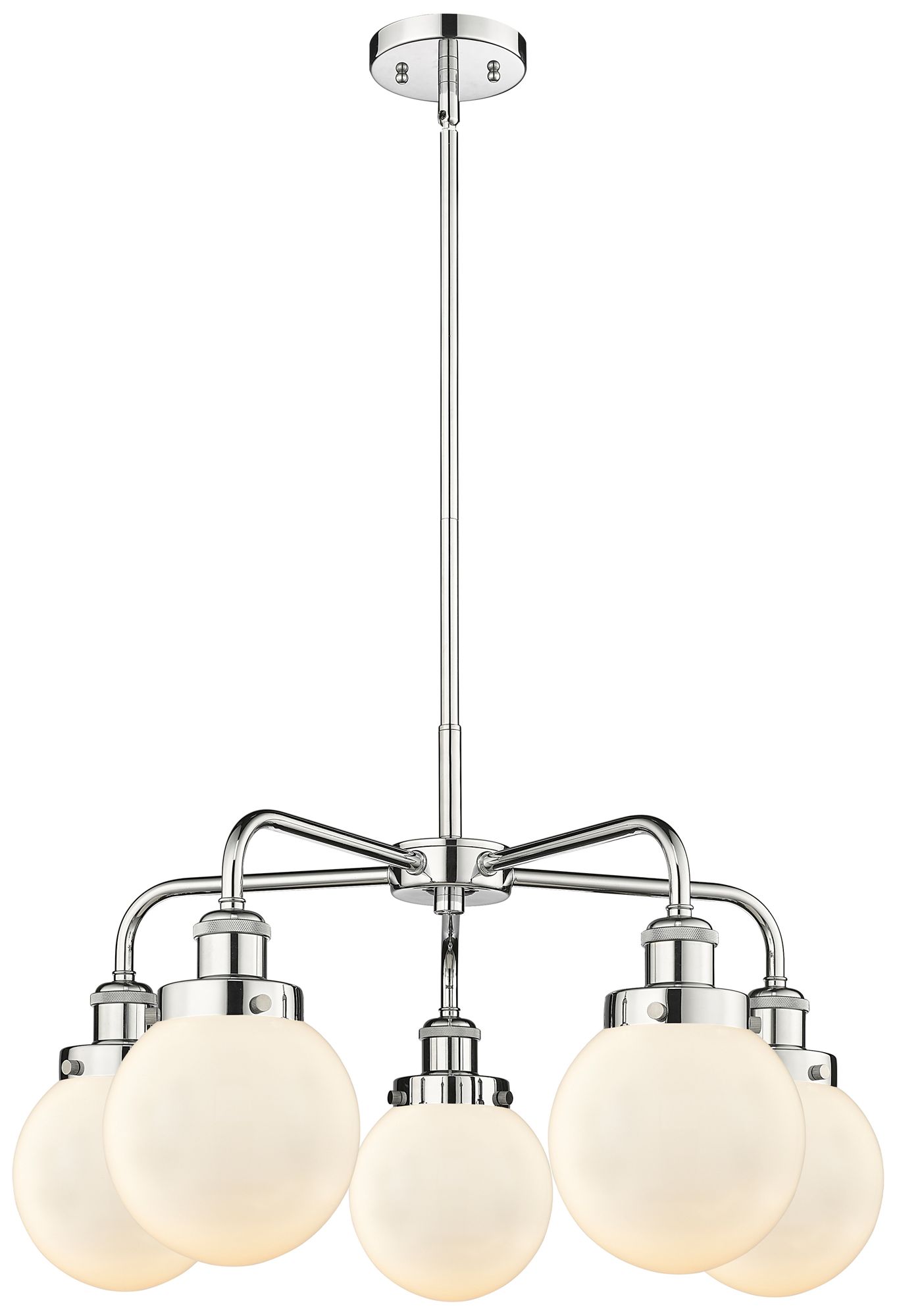 Beacon 24"W 5 Light Polished Chrome Stem Hung Chandelier w/ White Shad