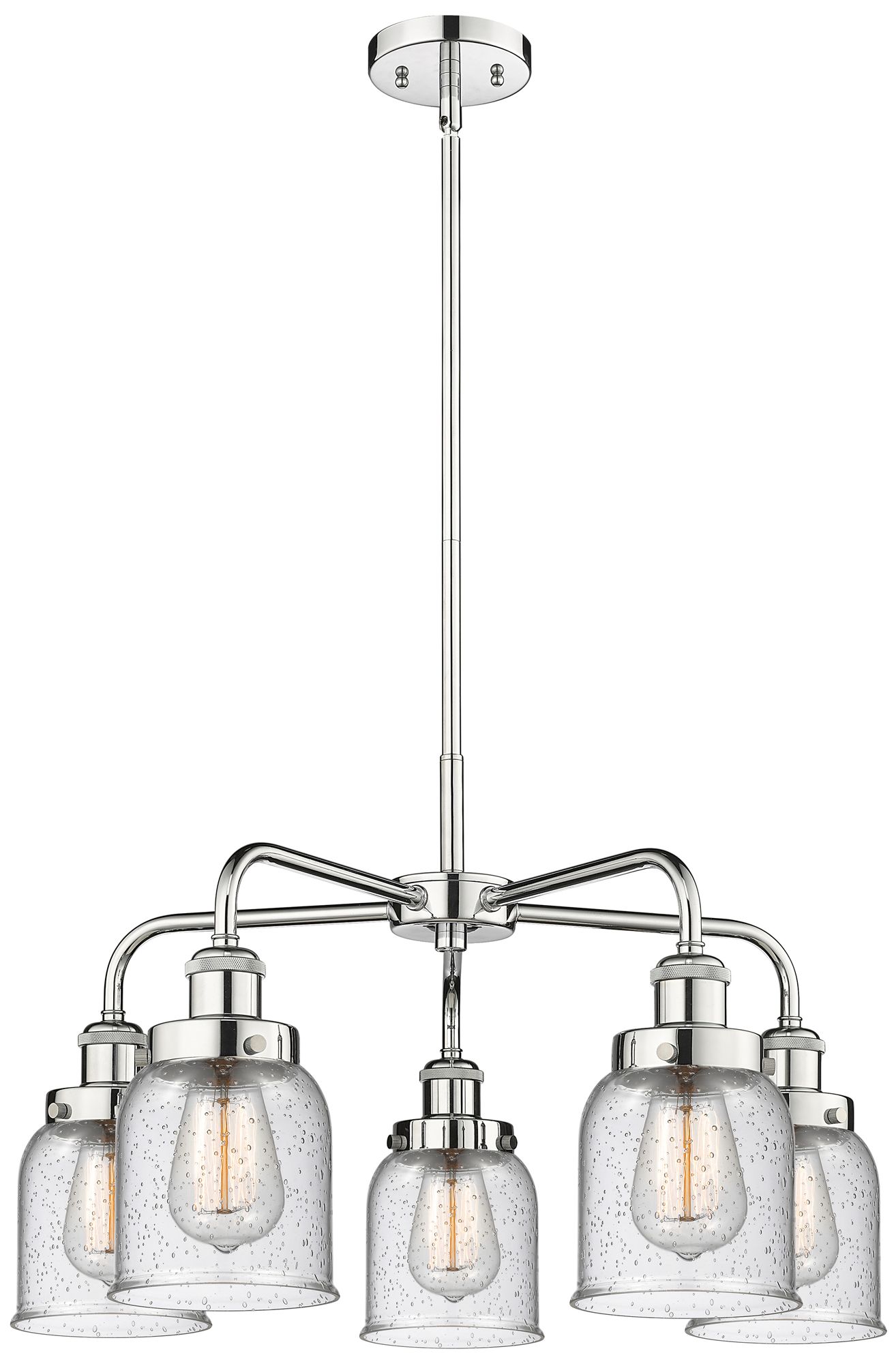 Bell 23"W 5 Light Polished Chrome Stem Hung Chandelier w/ Seedy Glass