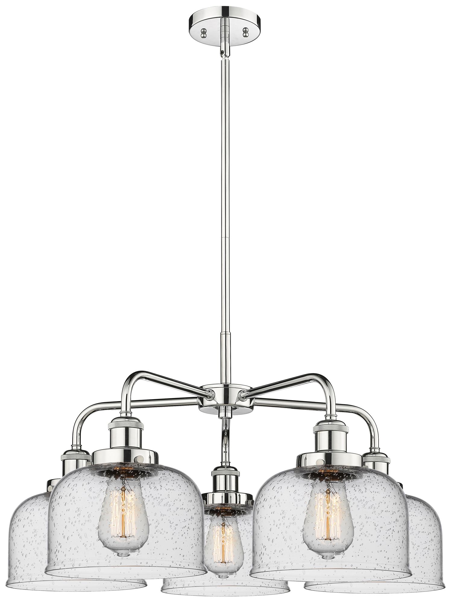 Bell 26"W 5 Light Polished Chrome Stem Hung Chandelier w/ Seedy Glass