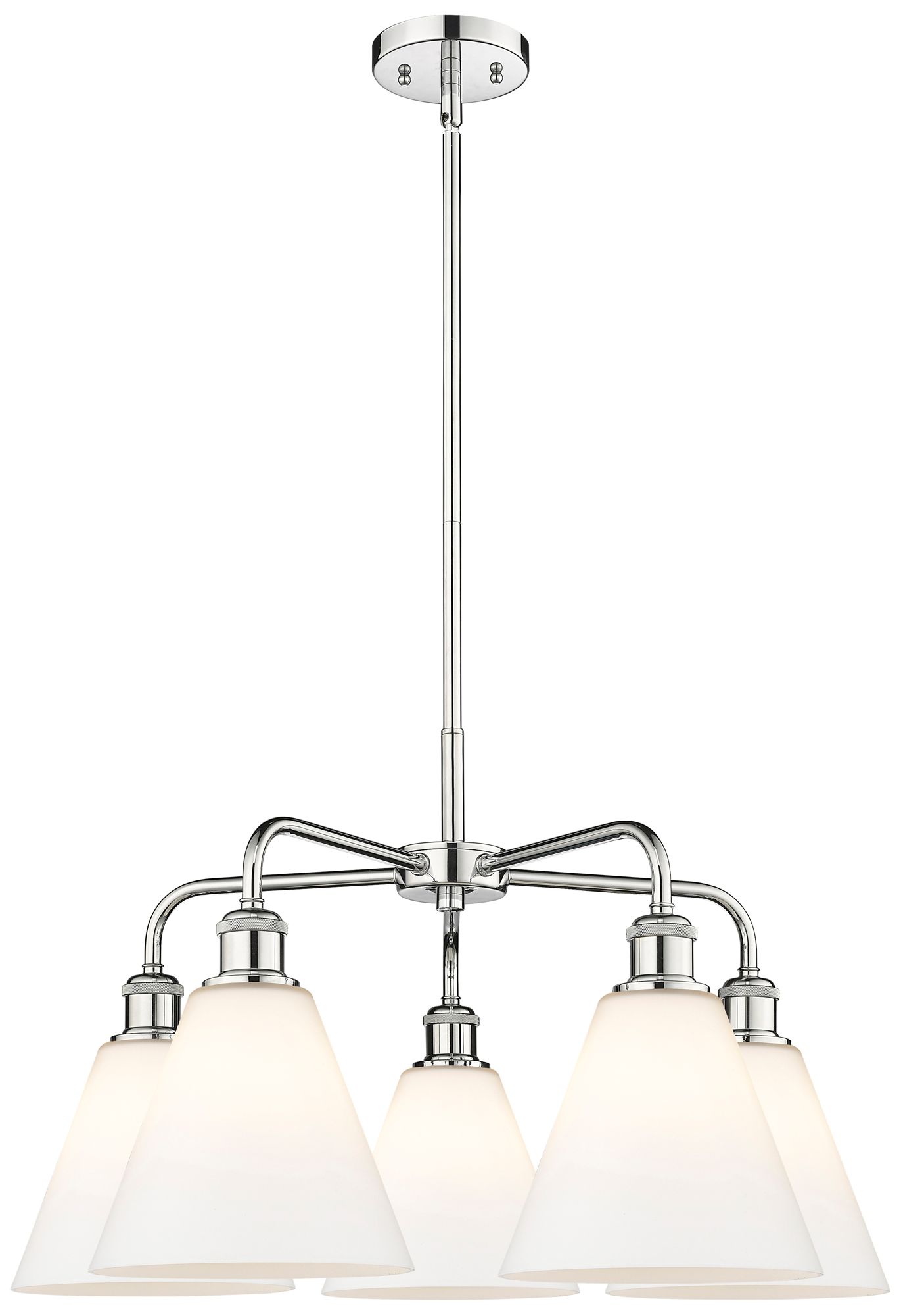 Berkshire 26"W 5 Light Polished Chrome Stem Hung Chandelier w/ White S