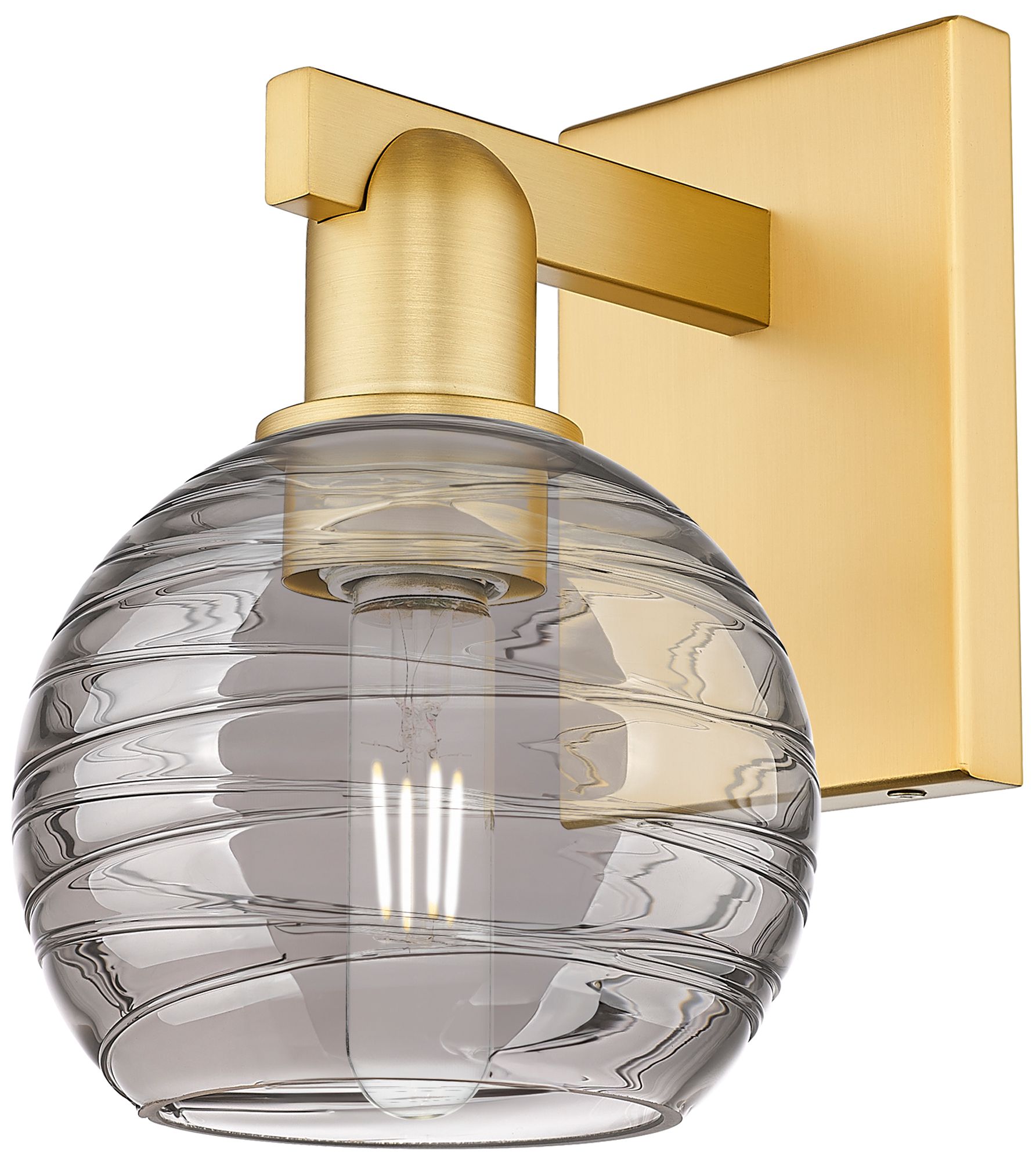 Athens Deco Swirl 11"H Satin Gold Wall Sconce With Light Smoke Shade