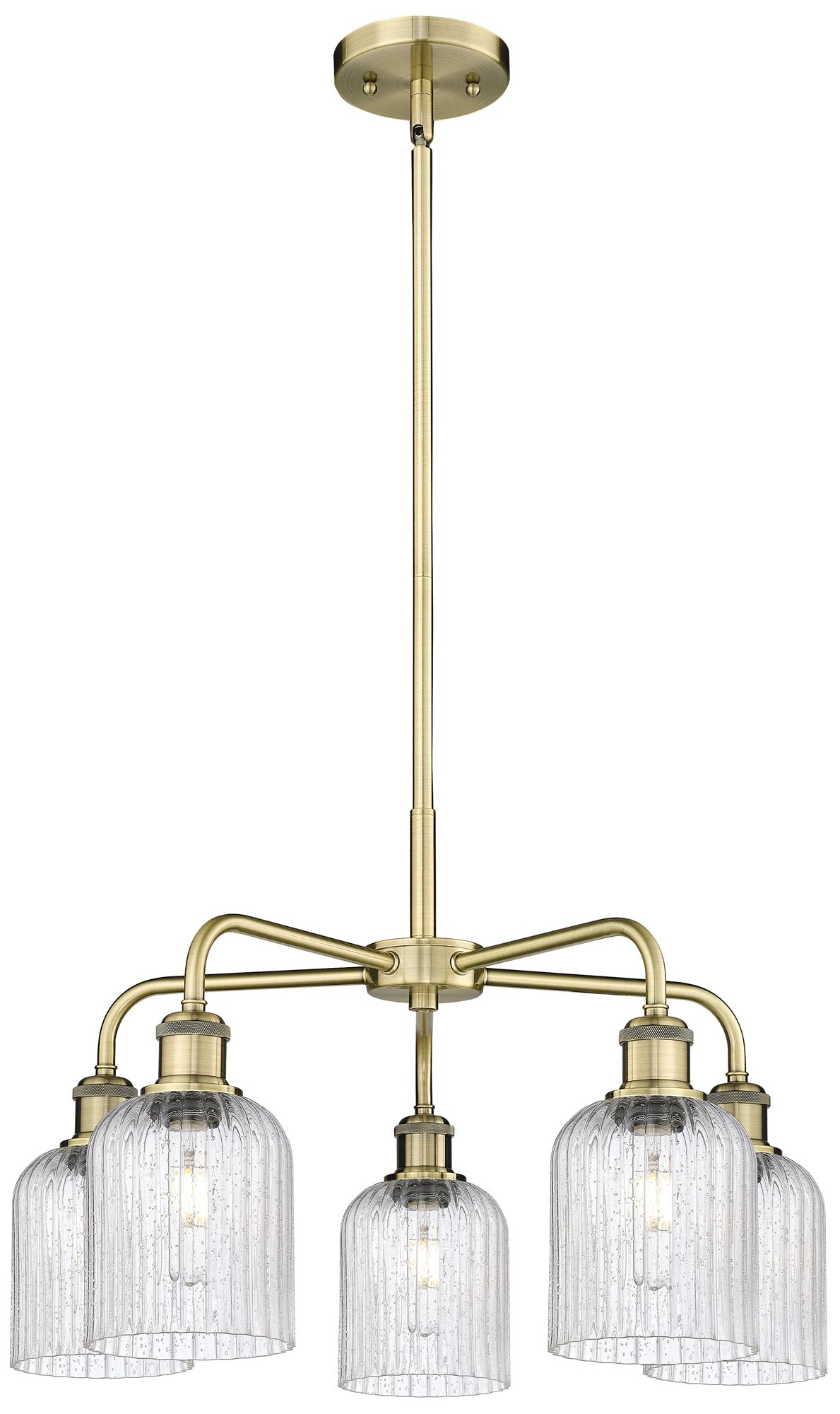 Ballston Bridal Veil 23" 5 Light Stem Hung Chandelier Brass w/ Seedy Shade