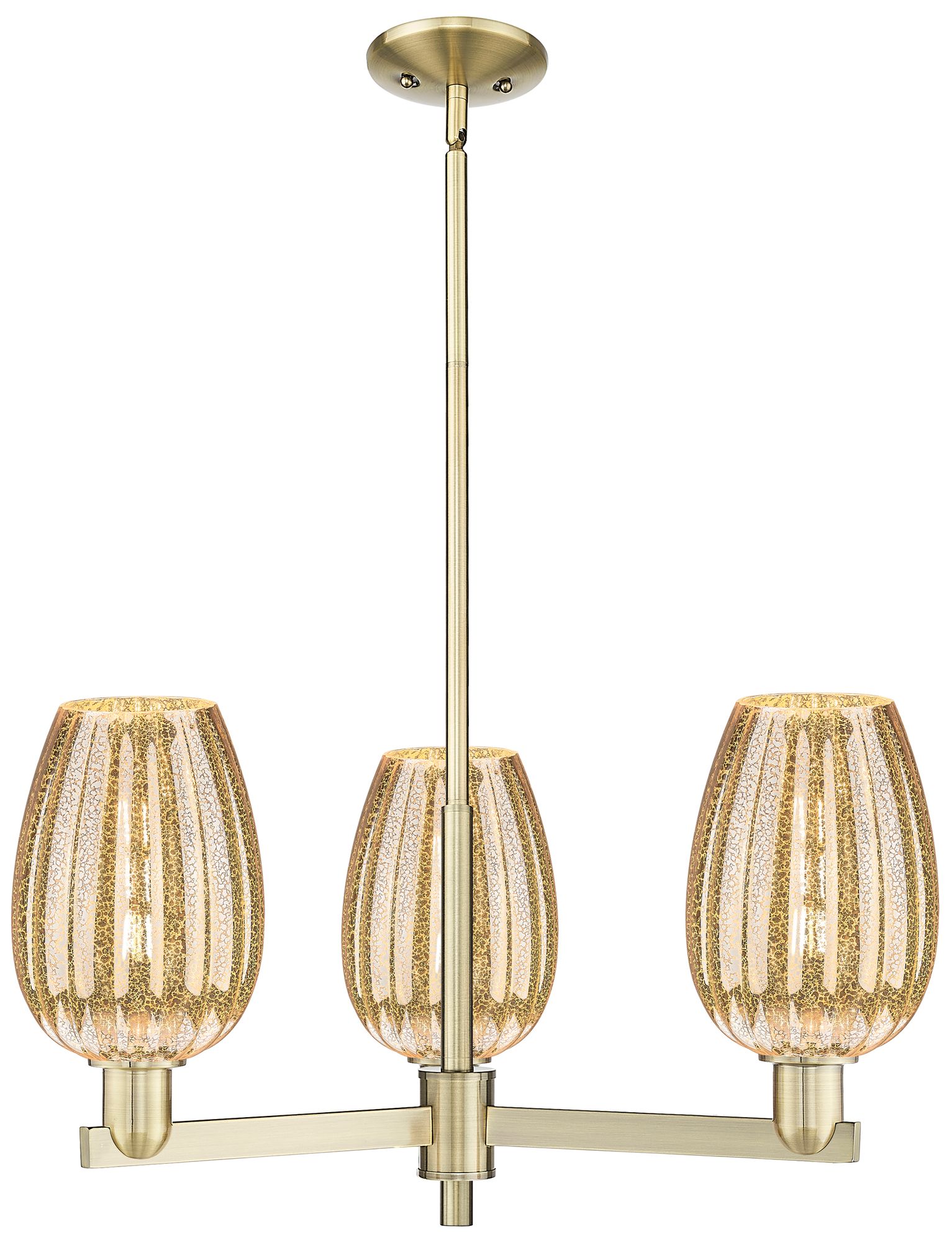 Preston 18"W 3-Lt Antique Brass Stem Chandelier w/ Flute Mercury Shade