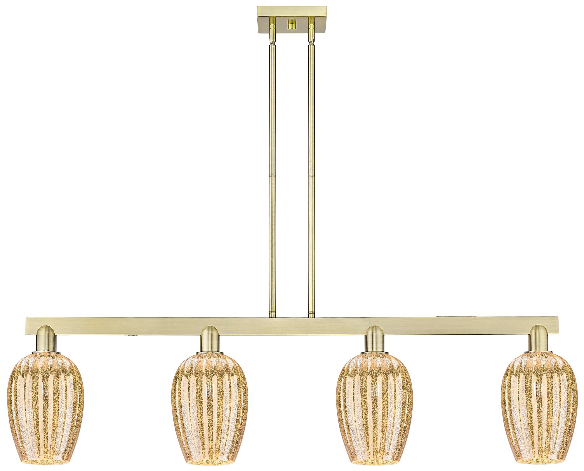 Preston 48"W 4-Lt Antique Brass Stem Island-Lt w/ Flute Mercury Shade
