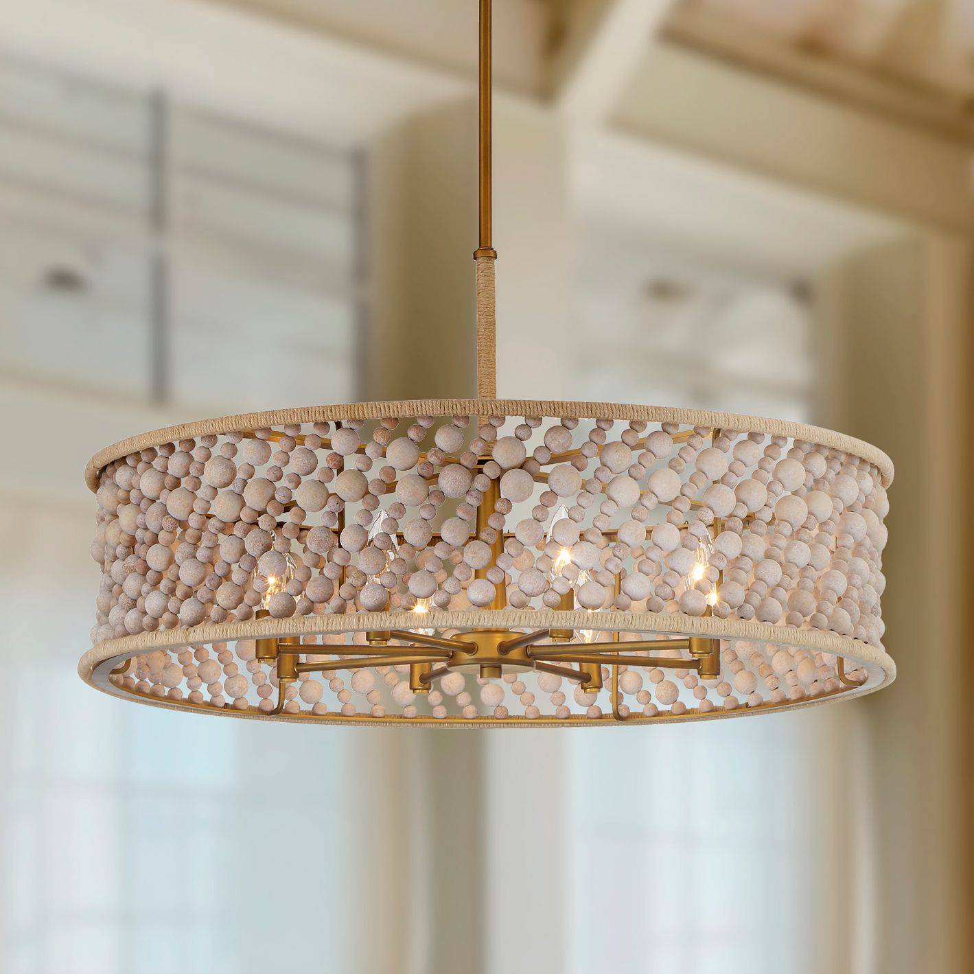 Minka-Lavery Horsmore 8-Light 29.5-in Brass Pendant with Wooden Beads Shade