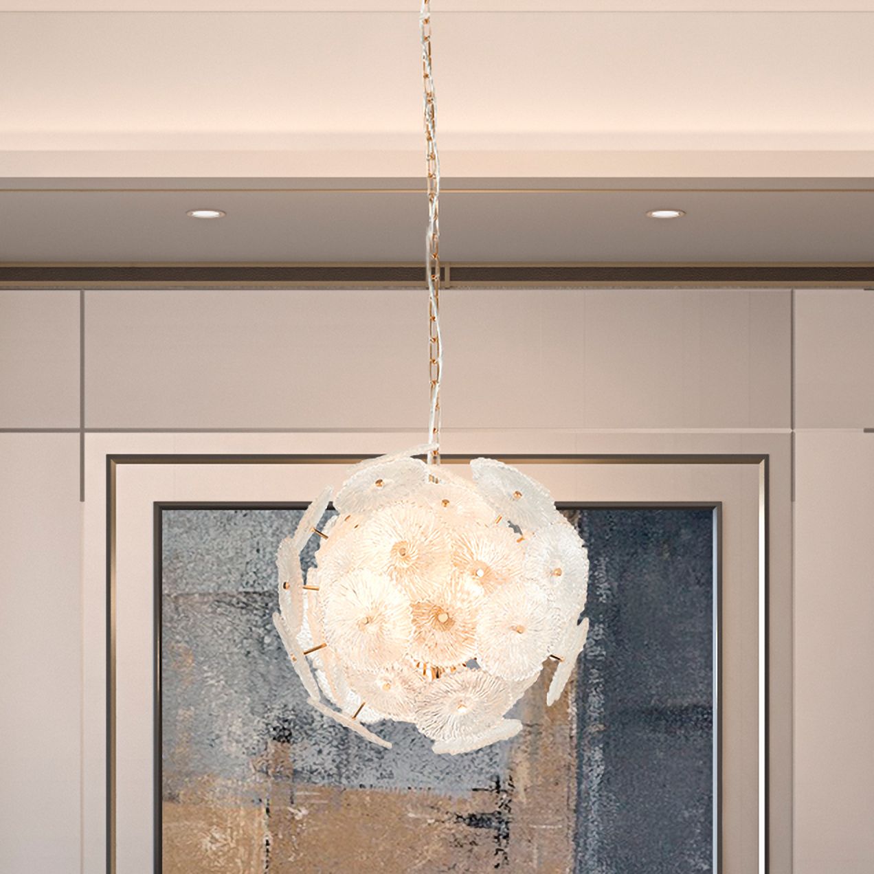 Globo 32.5"W 13-Light Brushed Brass Chandelier w/ Iridescent Glass Sha