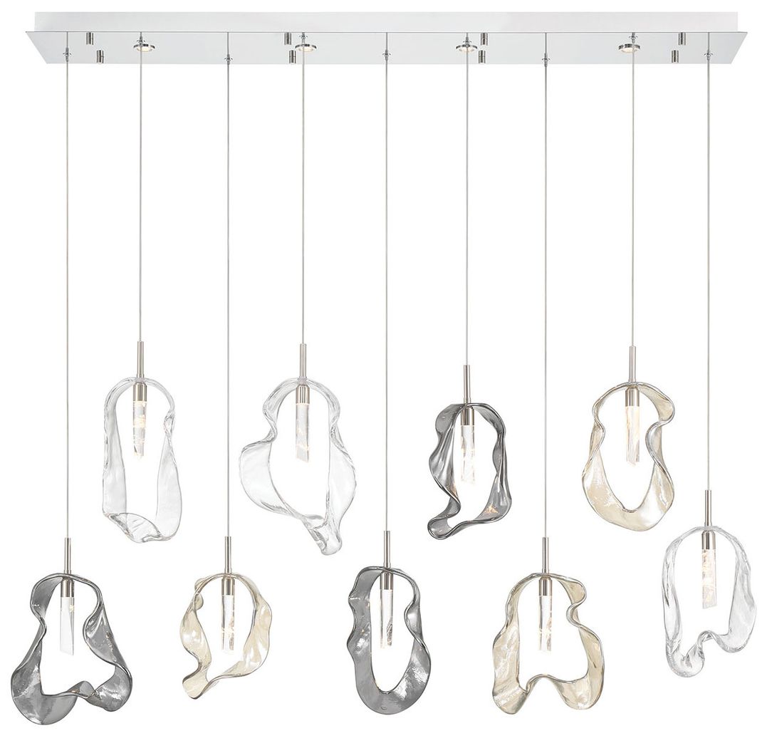 Eurofase Norah, Chandelier, 9-Light, 51", Polished Nickel, Mixed Glass
