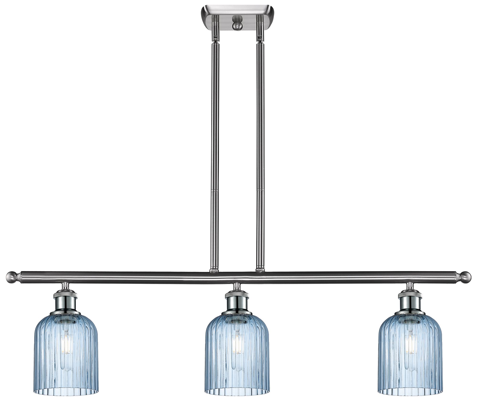 Ballston Bridal Veil 3 Light 36" Stem Hung Island Light Satin Nickel & Blue