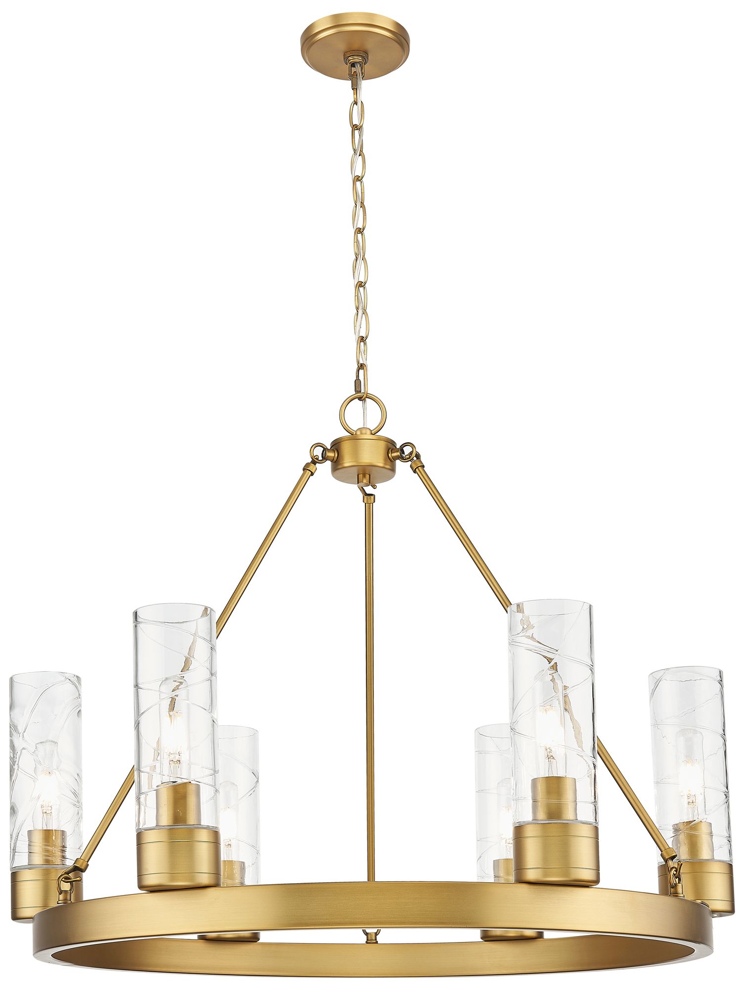 Boreas 29"W 6 Light Brushed Brass Chandelier With 8" Deco Swirl Shade