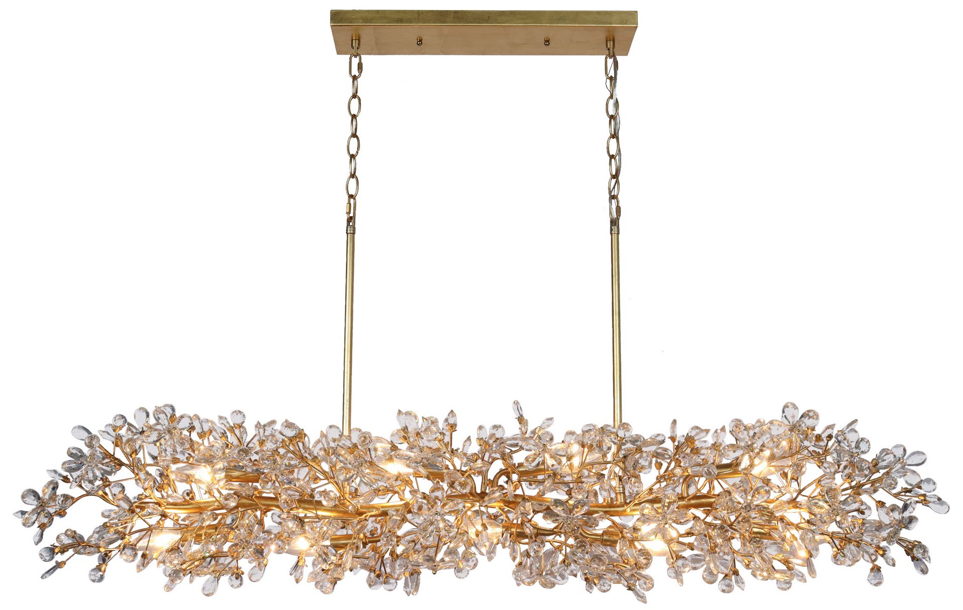 Haloey 45" Wide Gold Leaf Floral Crystal 7-Light Island Chandelier