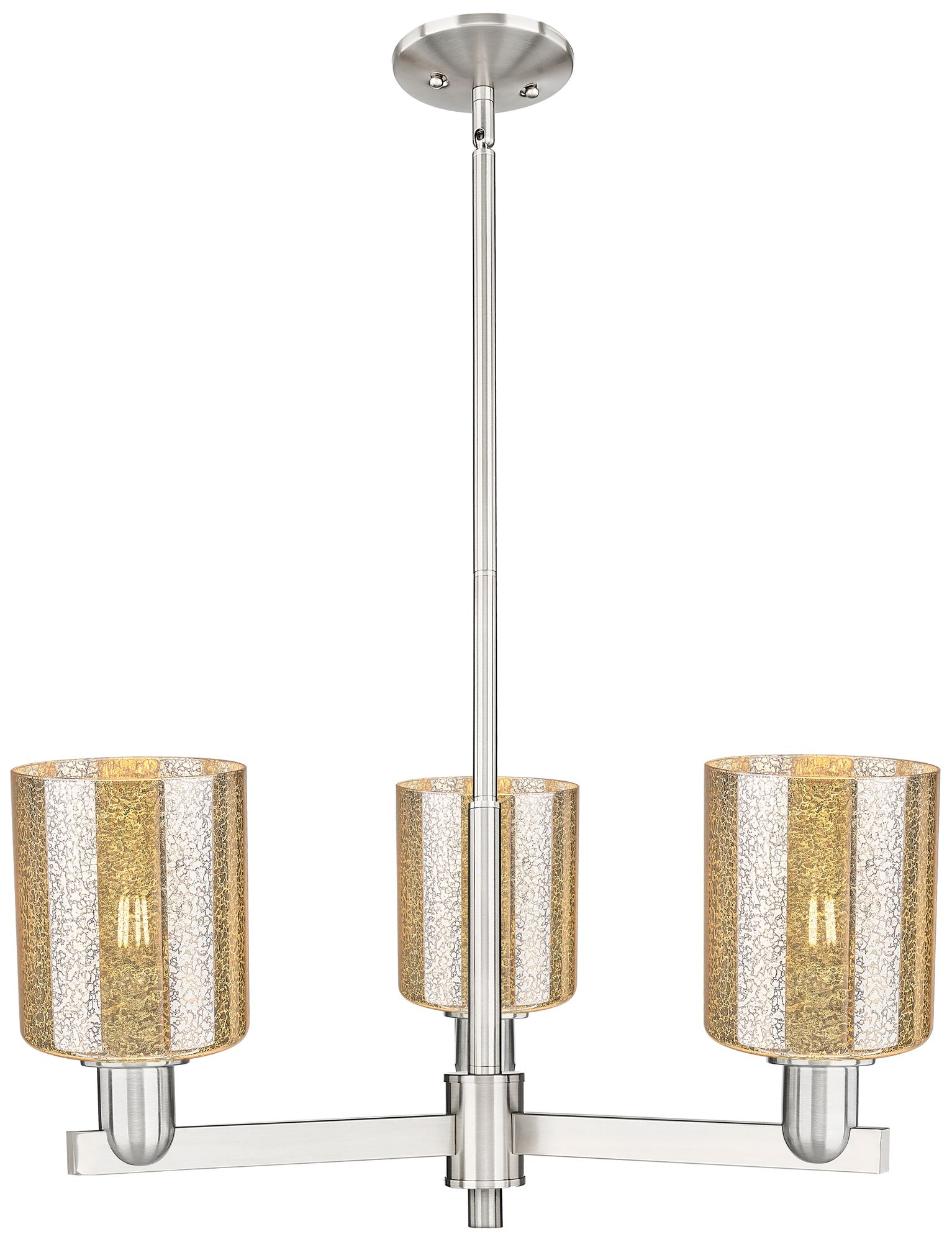 Arcadia Cobbleskill 27"W 3-Lt Satin Nickel Stem Chandelier w/ Mercury Shade