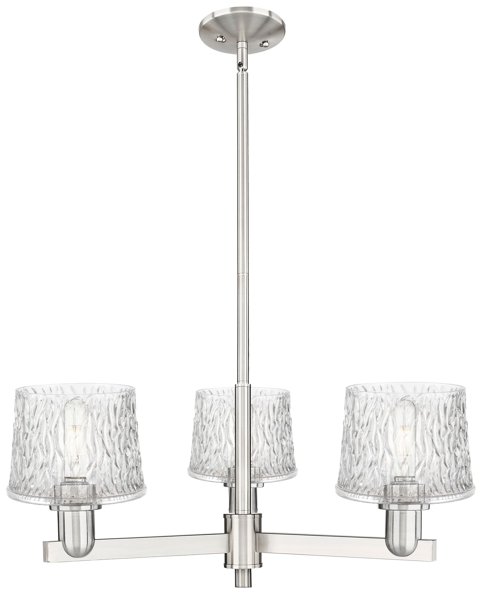 Arcadia Athens 28"W 3-Lt Satin Nickel Stem Chandelier w/ Water Glass Shade