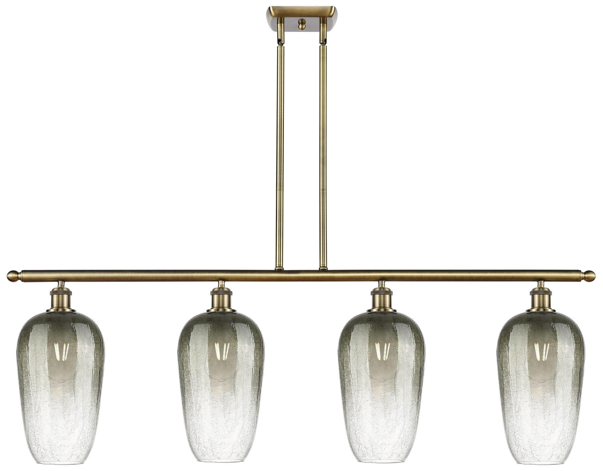 Natural Ballston Dome 48"W 4-Lt Antique Brass Stem Island-Lt w/ Fiber Shade