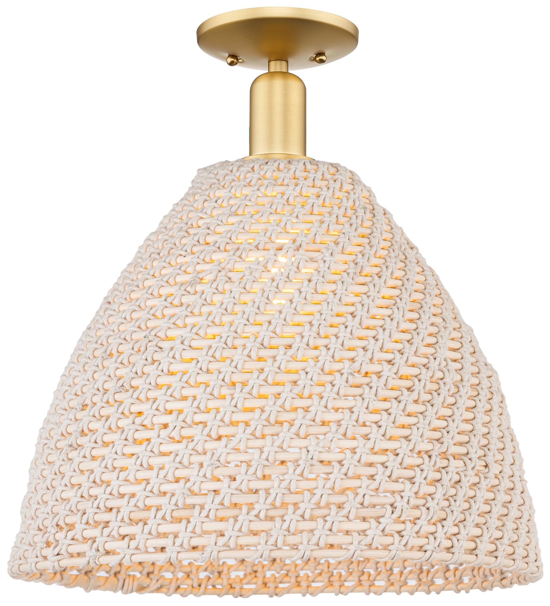 Natural Ballston Dome 16"W Satin Gold Semi-Flush With Fiber Shade