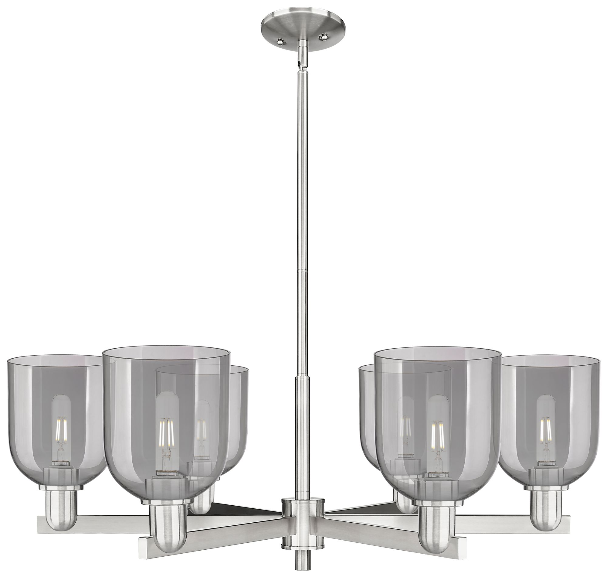 Arcadia Bella 35"W 6-Lt Satin Nickel Stem Chandelier w/ Light Smoke Shade
