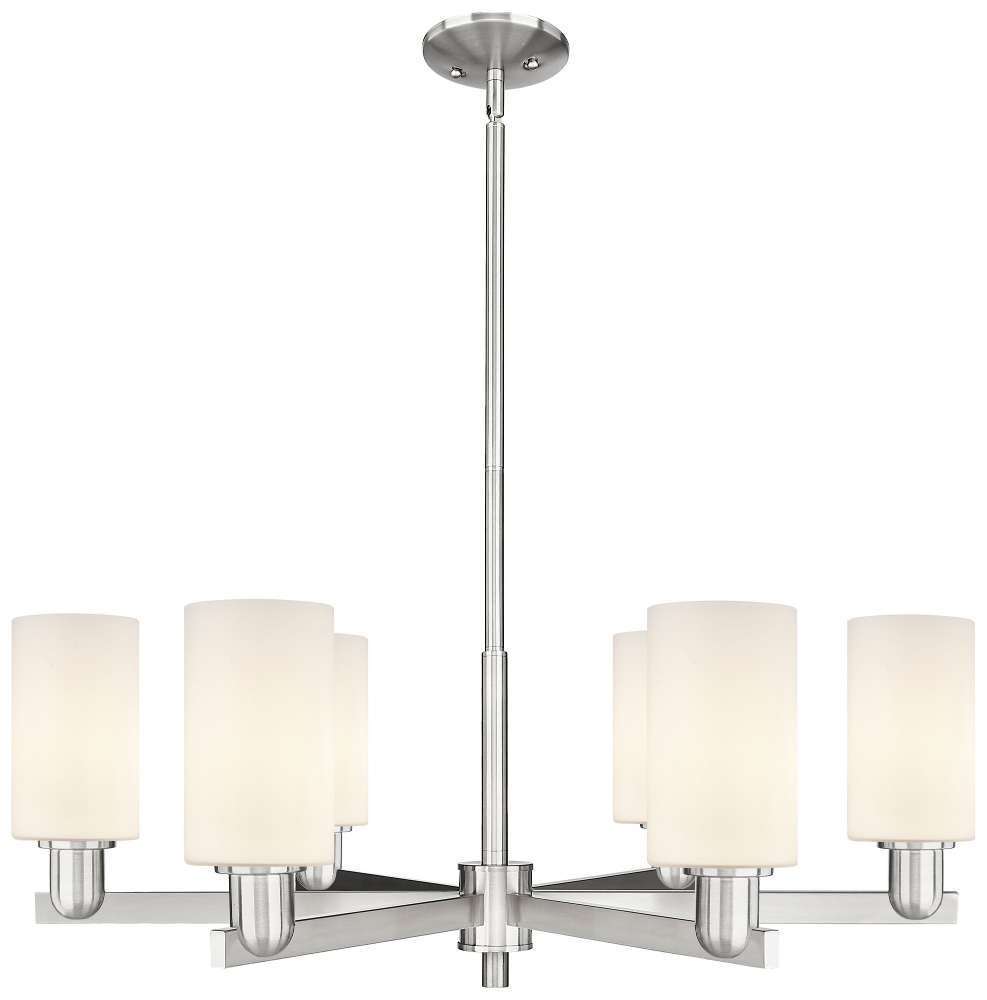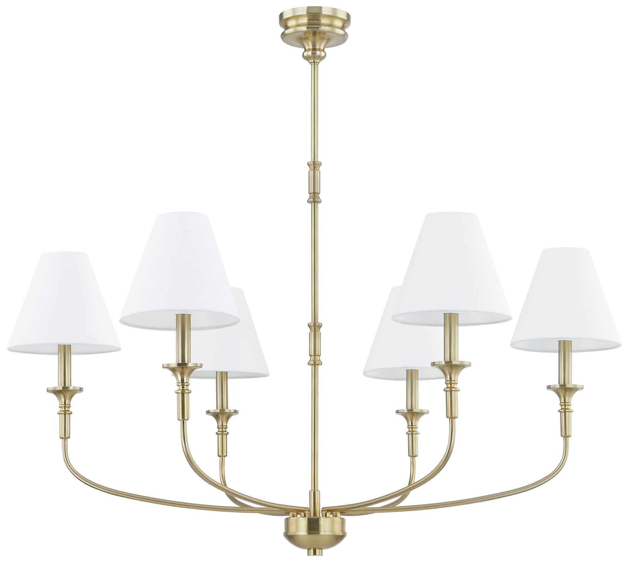 Arcadia Clymer 34"W 6-Lt Satin Nickel Stem Chandelier w/ White Shade