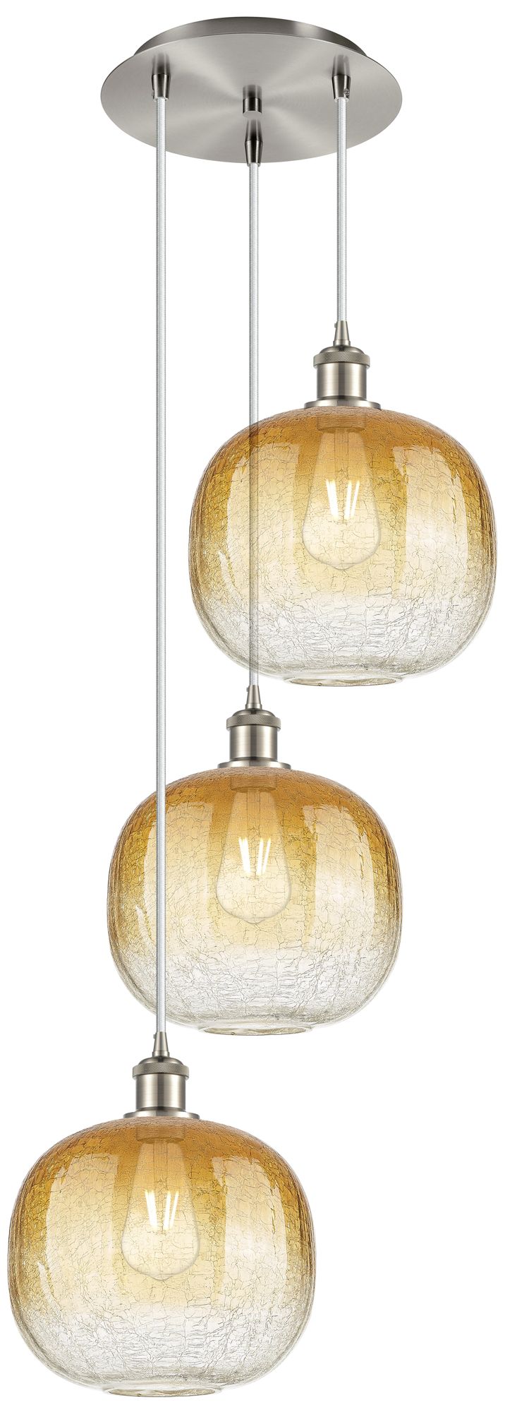Ballston Brookhaven Sphere 17"W 3-Lt Nickel Cord Pendant w/ Amber Shade