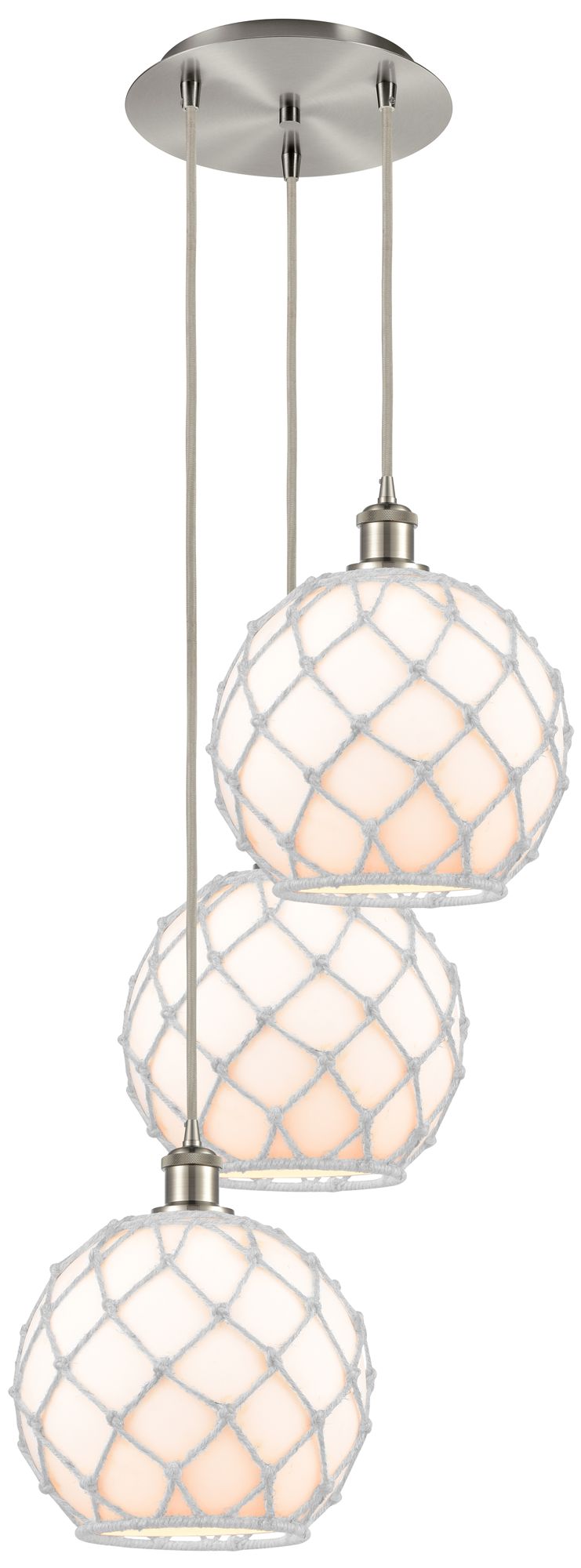 Ballston Farmhouse 17"W 3 Light Nickel Cord Pendant w/ White Shade
