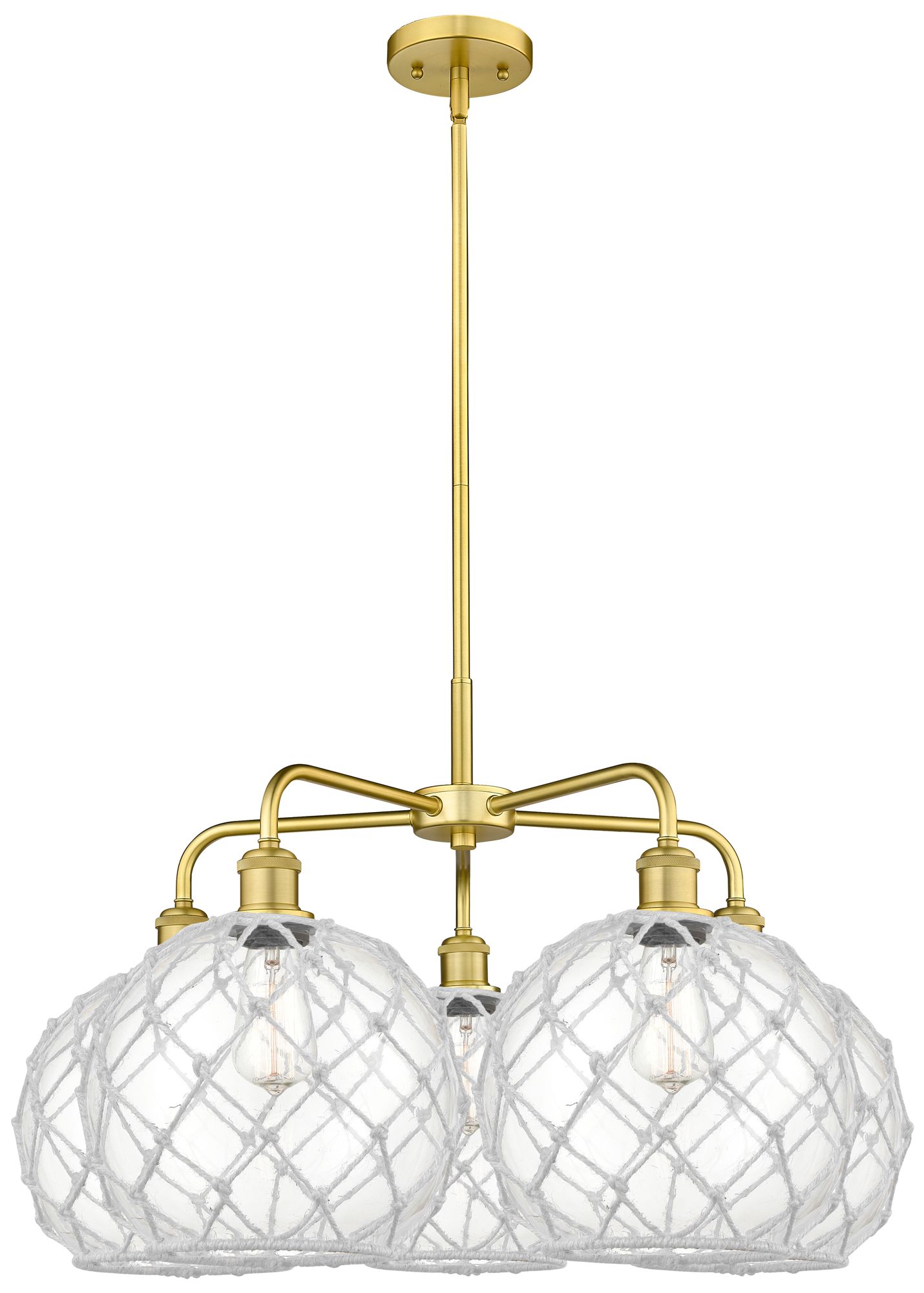 Ballston Farmhouse Rope 17"W 3 Light Gold Cord Pendant w/ White Shade