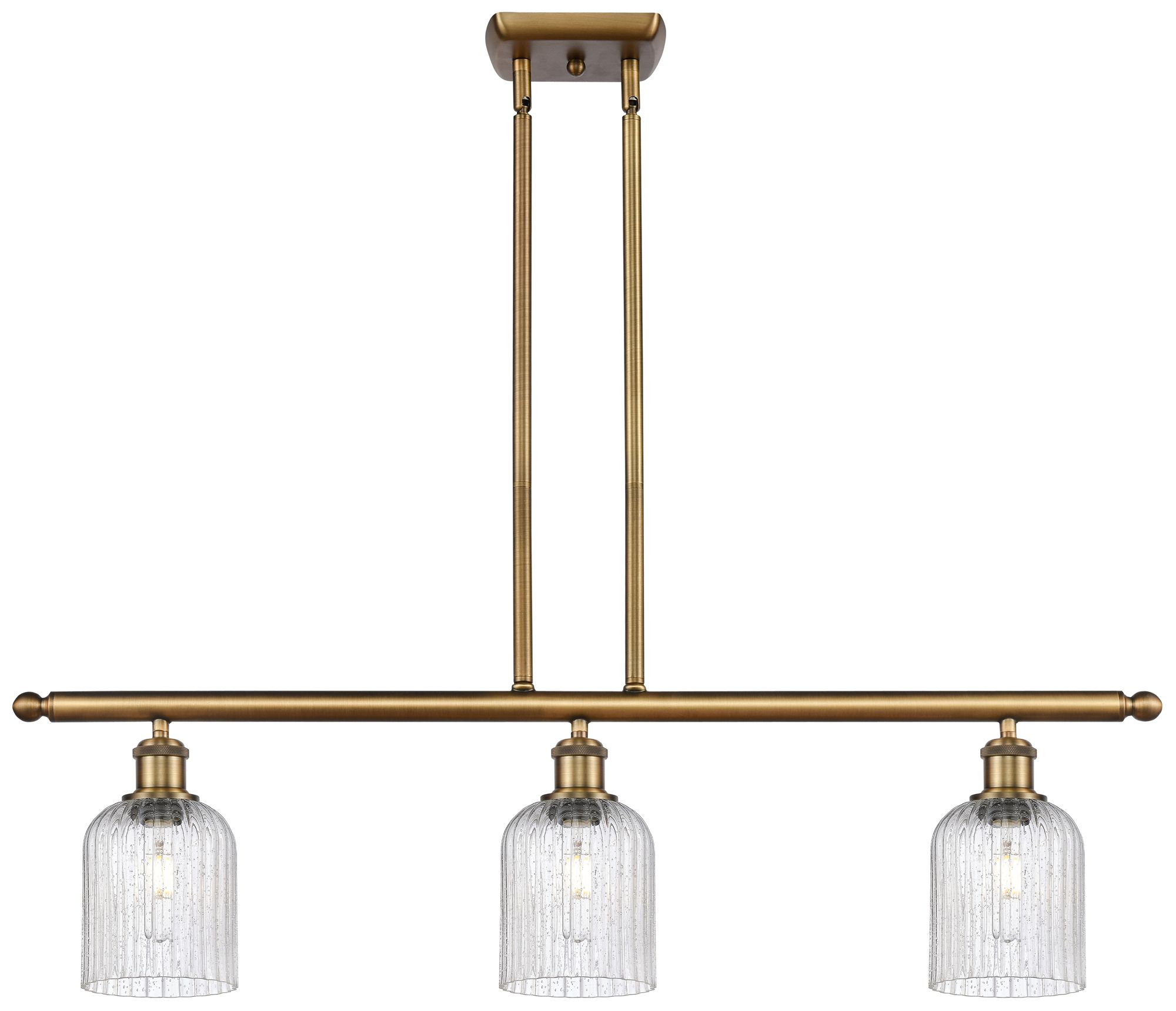 Ballston Bridal Veil 3 Light 36" Stem Hung Island Light Brass Seedy Shade