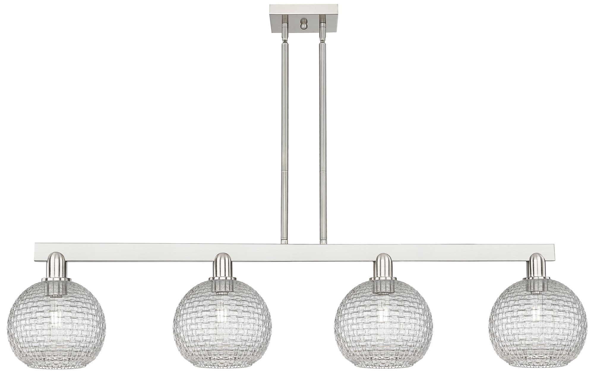 Arcadia Athens 51"W 4-Lt Nickel Stem Island Light w/ Basketweave Shade