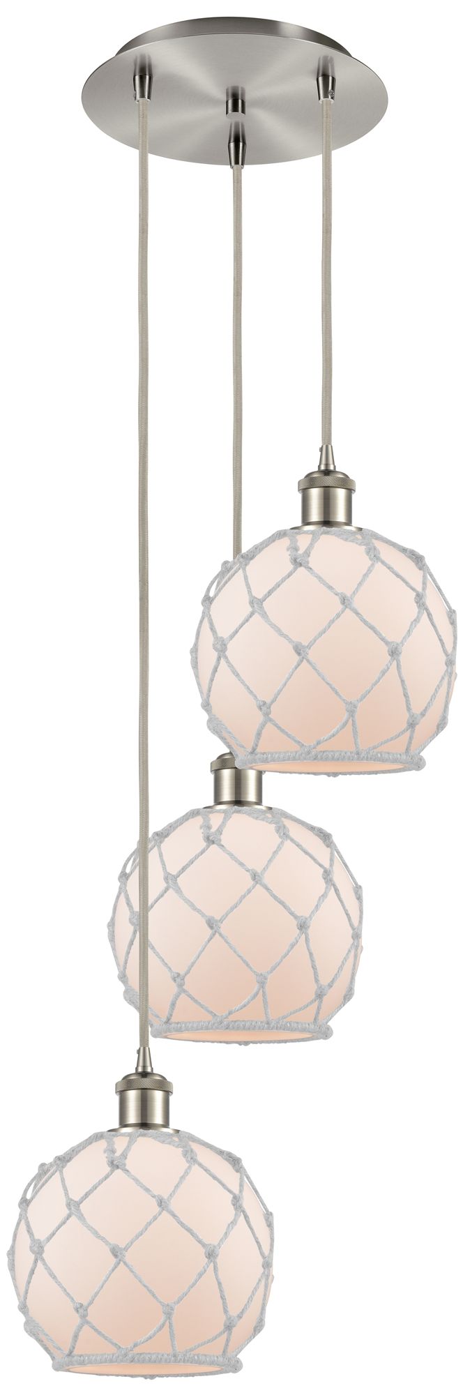 Ballston Farmhouse 15"W 3 Light Nickel Cord Pendant w/ White Shade