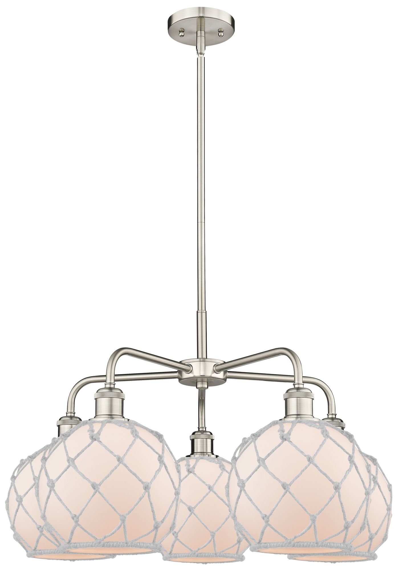 Ballston Farmhouse 27"W 5 Light Satin Nickel Stem Chandelier w/ White Shade