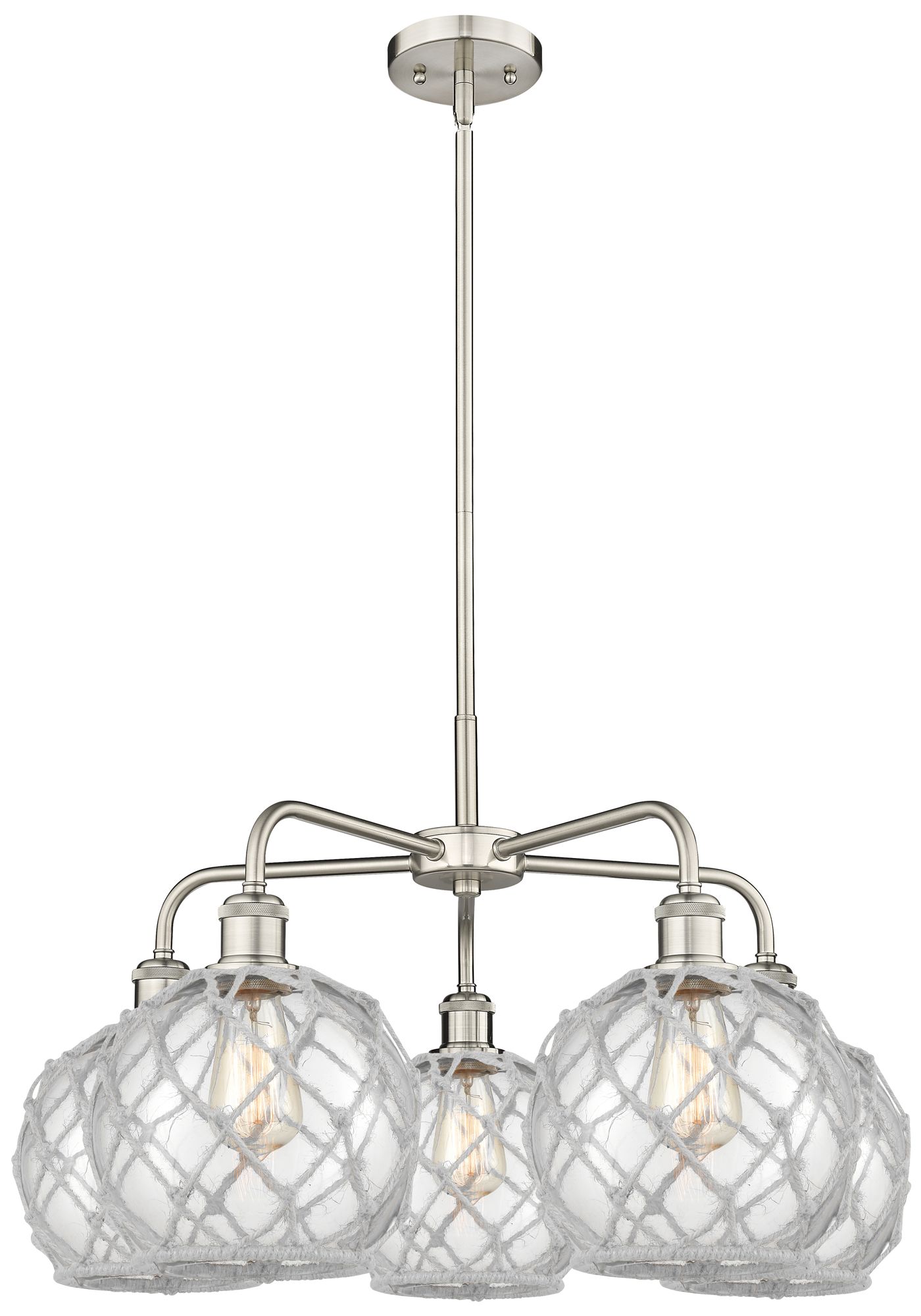 Ballston Farmhouse 27"W 5-Lt Satin Nickel Chandelier w/ Clear White Shade