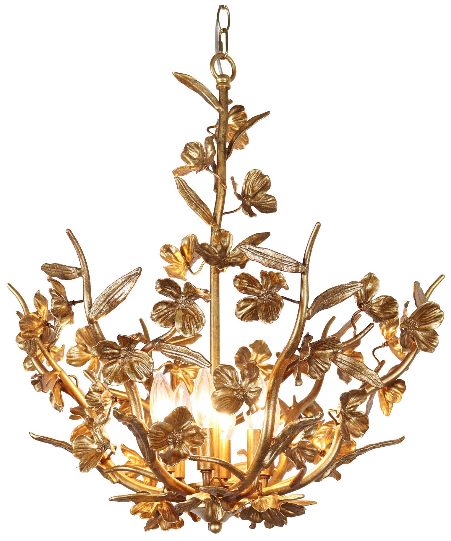 Glovia 22.3" Wide Gold Leaf Floral 6-Light Chandelier